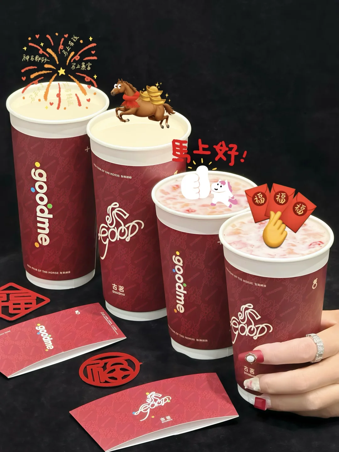 好家伙,终于等到古茗上新皮肤了 这是让阿祖过年放假的节奏吗ahaha😂 真的有被惊艳到!!!莫名的高级感,越看越好看! 还有“马到成功”的小巧思~~ · 学到了一些很新的p图方式分享給大家! 分分钟就有新年那味儿了 👉🏻导入图片-贴纸-动态live(选择自己喜欢的调整位置和大小即可)