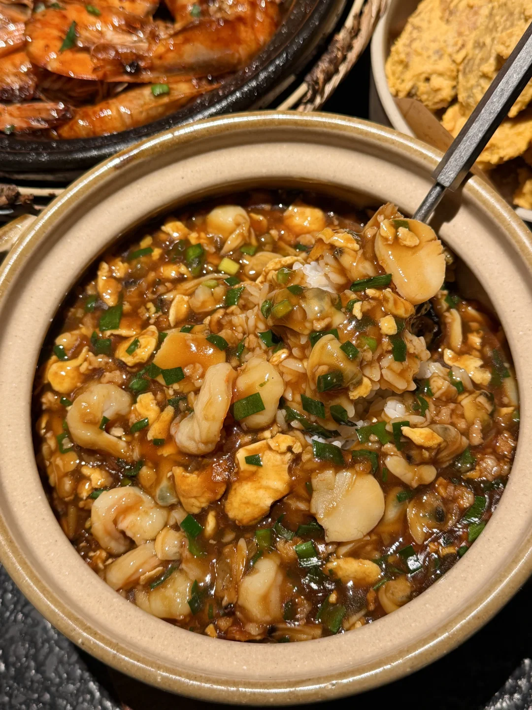 近期吃过不下10次的店啊啊啊!🥹🥹 黑芝麻猪油糕好好吃啊!上面有层厚厚的黑芝麻,超浓郁!年糕糯叽叽的趁热吃还会拉丝!不夸张!他家都是现点现炒非预制!我们随便点的海鲜都没踩雷!基围虾个头又大又肥美!分量也好扎实!猪蹄凤爪、豆腐鱼、…吃过n次了!每次去男朋友都是一顿夸(甬江烟火)