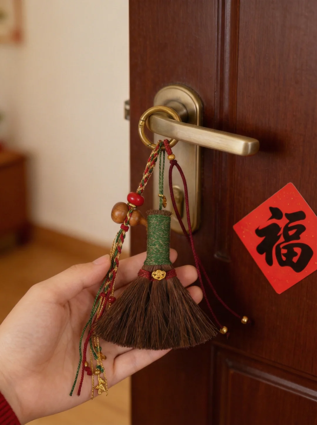 旧的一年到这里为止 新的一年从门口开始 门口必须要有扫除霉运的小扫把 红色这一款尤其适合除夕 红本身就是年的颜色 配葫芦纳福 寓意很满却不张扬。 天然棕榈手工捆扎 有植物的质感和温度, 不是一次性的装饰 而是能安静陪着新年的东西 灯亮起来 春联贴好 门口再挂一把红色小扫帚 整个家的气场都会不一样