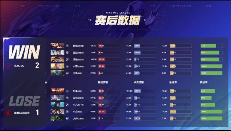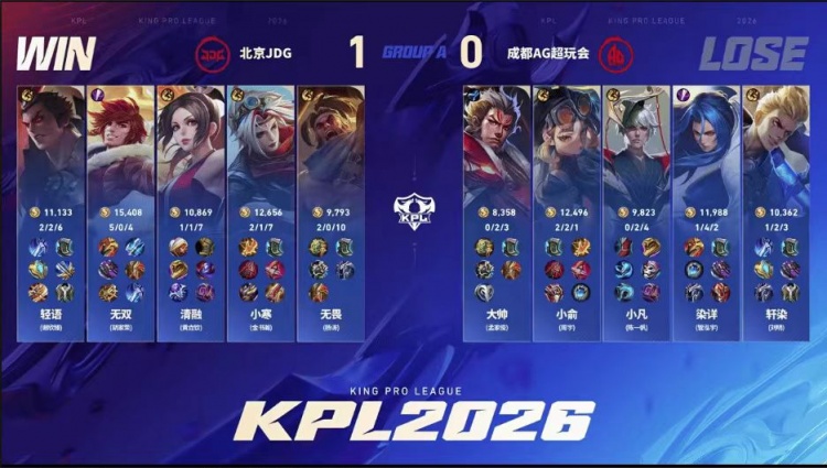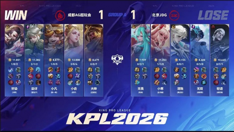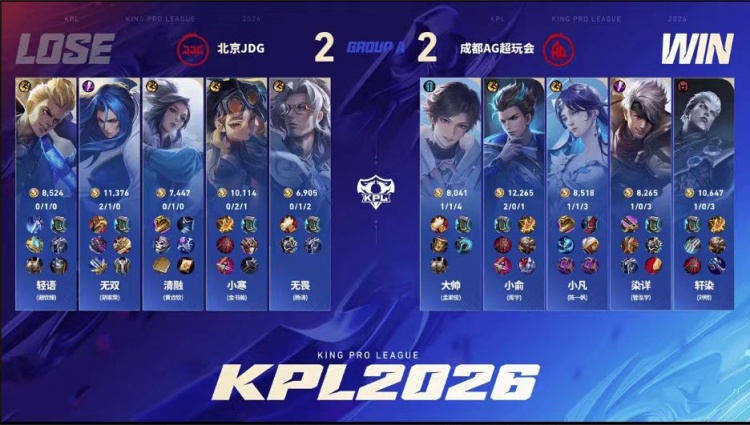 第一局:成都AG超玩会0-1北京JDG