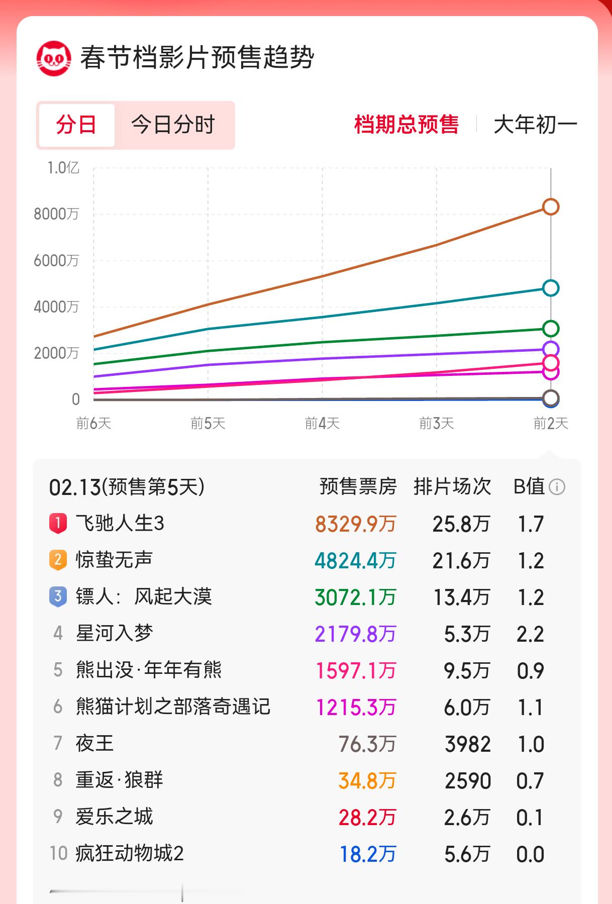 今年春节档预售票房对比去年同期预售票房