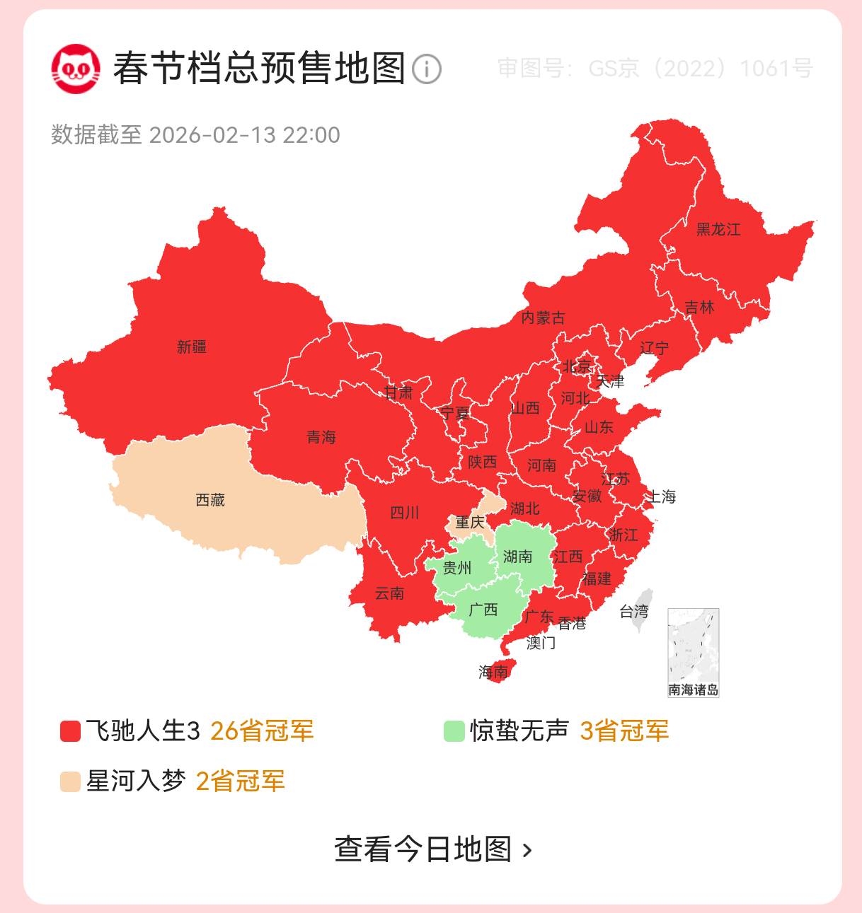 《飞驰人生3》第一场小规模看片会今日结束后,口碑基本稳了,预售票房立刻开始加速上扬,今天一天时间拿下2省:云南,江西!全国26省预售票冠达成!预售总票房突破8000万!冲鸭!!!