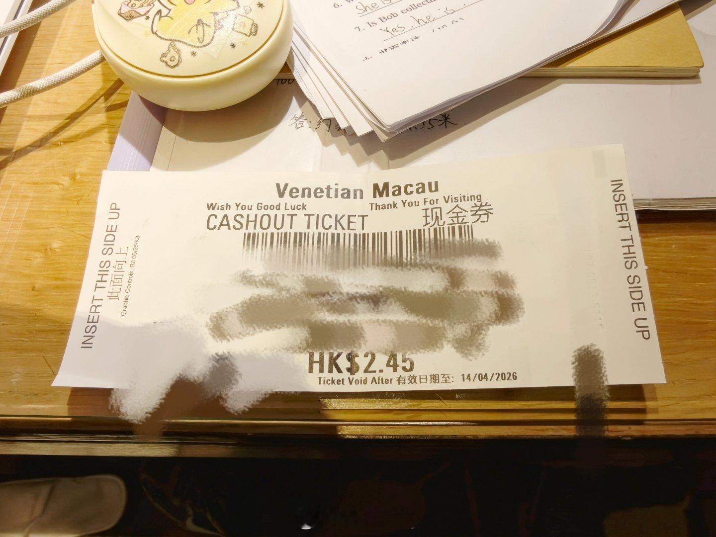 8:40左右进场,10点整出场2000港币的成本第一个500港币刚开始想先找个赌注小一点的先试试手熟悉一下结果找了个机器玩了2把跟我说还剩160港币一上来就有点懵逼点击了屏幕上的服务喊了个工作人员给我讲了一下说你这是2港币的88倍我说哦,好的😐…………然后就拿着剩下的玩了几个不同的机器有摇筛子压大压小的有老虎机摇摇摇的有一个机器中了个大的30多港币中了350港币,10倍边上来了个老哥说手气不错呢见好就收哈还玩了几把压闲压庄也是搞不懂规则…………最后还剩1200港币+42.5现金券感觉是:挺无聊主要吧,对规则不熟悉老虎机的种类很多也不知道咋就赢了咋就输了也没做啥准备…………可能我就不是想靠赌运气赢的人吧感受感受就好现金券做个留念来过。