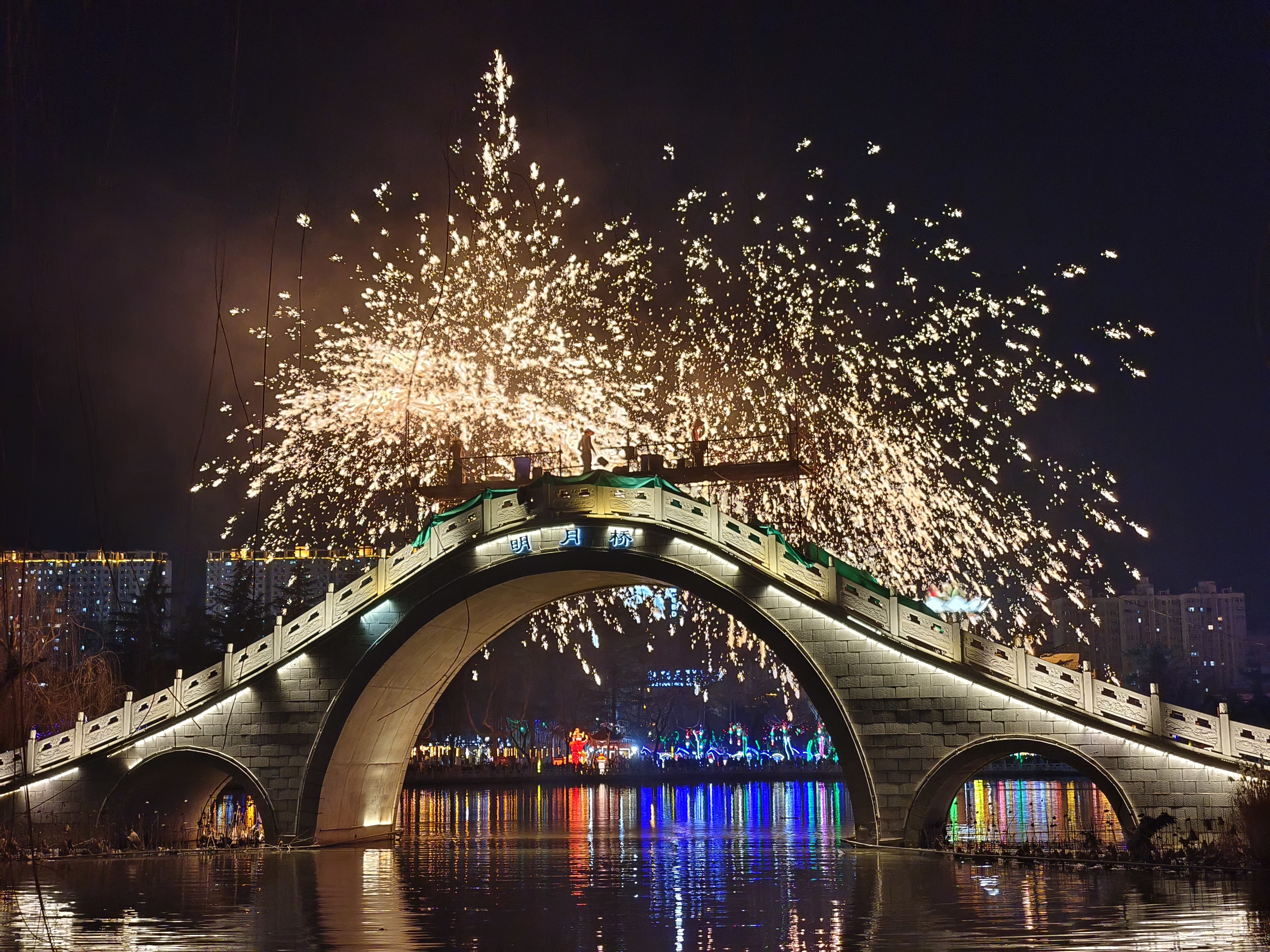 我在宝鸡过大年走进宝鸡渭滨,夜入人民公园,一场非遗与年味的双重盛宴扑面而来。本届灯展以骏马踏春耀宝鸡·华灯映福暖陈仓为主题,20余组大型灯组沿湖排布,周秦古韵、西府民俗、马年祥瑞三大板块交相辉映。仿古铜柱灯、湖心莲韵灯、民俗社火灯层层递进,光影错落,一步一景,把周秦故里的文化底蕴藏进流光溢彩里。重头戏当属国家级非遗打铁花。1600℃铁水凌空挥洒,匠人以木为笔、以火为墨,刹那间火树银花、星河倾泻。这是宋代传承至今的民间绝技,刚猛热烈,是中国人最硬核的新春浪漫。灯展雅致,铁花震撼,人声鼎沸,年味滚烫。在渭水之滨,用一场非遗夜宴,致敬千年传承。