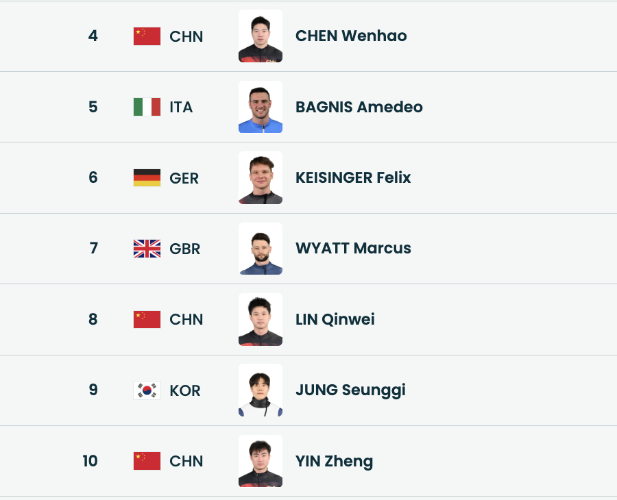 米兰冬奥会男子钢架雪车第3、4轮即将开赛,在2月12日结束的1、2轮比赛中🇨🇳中国选手陈文浩排名第4,殷正、林勤炜并列排名第8。第3轮比赛陈文浩第4位出发,林勤炜第8位出发,殷正第10位出发。