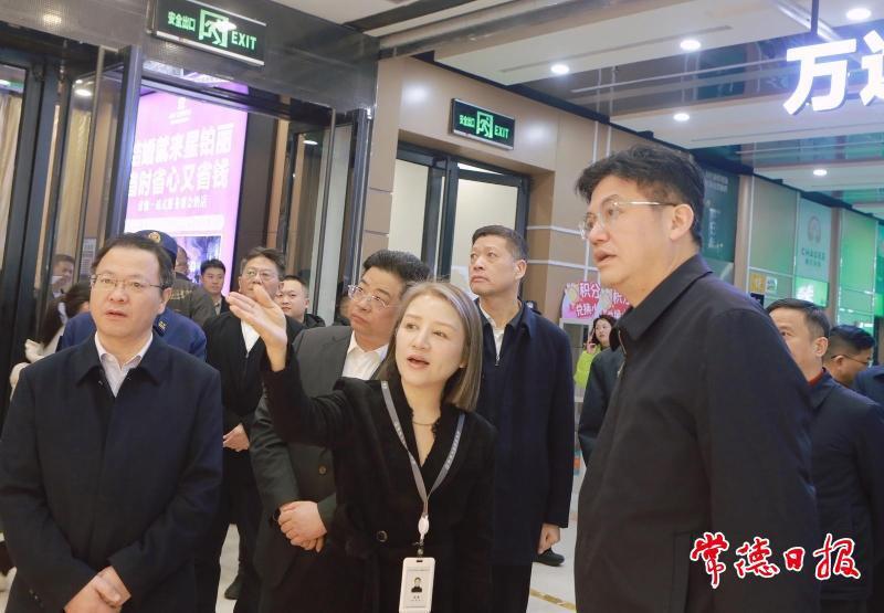 春节临近,常德万达广场人来人往,年味十足。罗毅君、周振宇一行督导检查商业综合体安全防范、商场市场节日保供工作,要求始终把安全放在首位,严格落实安全生产主体责任,加强隐患排查整治,营造安全、放心、有序的消费环境。要多措并举做好保供稳价工作,加强市场监管,严把食品安全质量关,让广大人民群众买得放心、吃得安心。