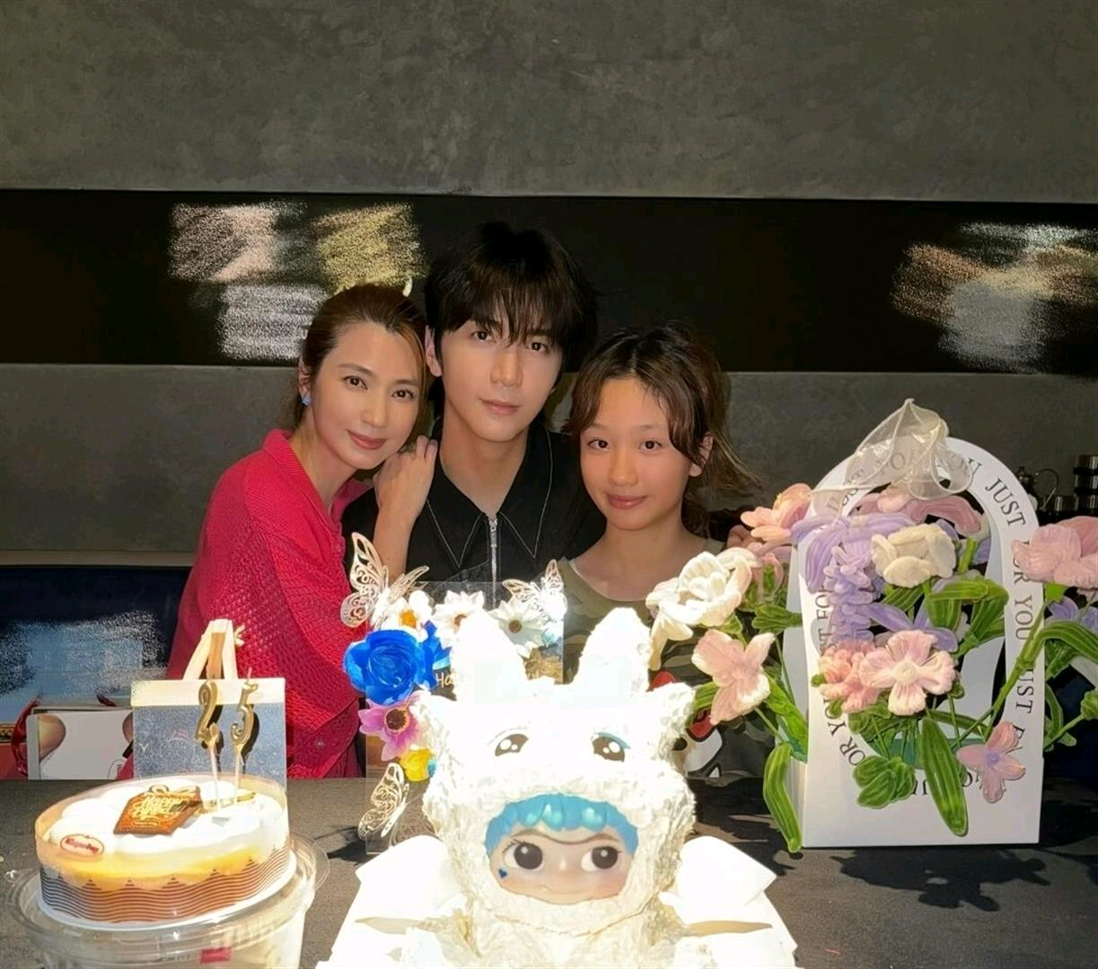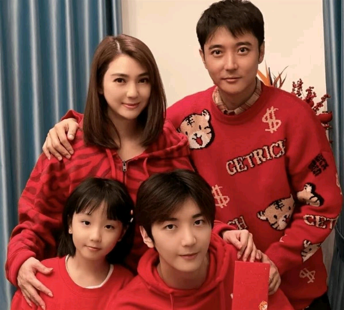 54岁洪欣晒一儿一女,俩孩子下半张脸巨像,都是大鼻子