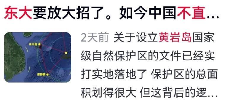 东大在南海又有大动作!不直接对台“出手”,却先盯紧黄岩岛,这一步棋太妙了! 黄岩岛位置特殊,扼守南海要道,战略意义重大。2024年11月,中国依法公布黄岩岛领海基线,向联合国交存声明和海图,明确领海范围,坚定维护主权。2025年9月,国务院又批准设立黄岩岛国家级自然保护区,既保护珊瑚礁生态,又进一步宣示主权。 与此同时,中国海警巡航力度持续加大,非法侵闯得到有效遏制,渔业秩序也更有保障。对于长期在此作业的菲律宾渔民,中方多次给予人道关怀。但马科斯政府上台后,却在南海不断升级对抗,拉外部势力介入,结果民生没改善,内部矛盾反倒更突出。 中国始终主张通过对话合作解决分歧,推动“南海行为准则”磋商。黄岩岛的每一步管控,都是依法行事、有理有据,展现负责任大国形象。菲律宾若继续依赖外部力量,只会更被动。回归对话协商,才是正道。 对此各位读者怎么看?