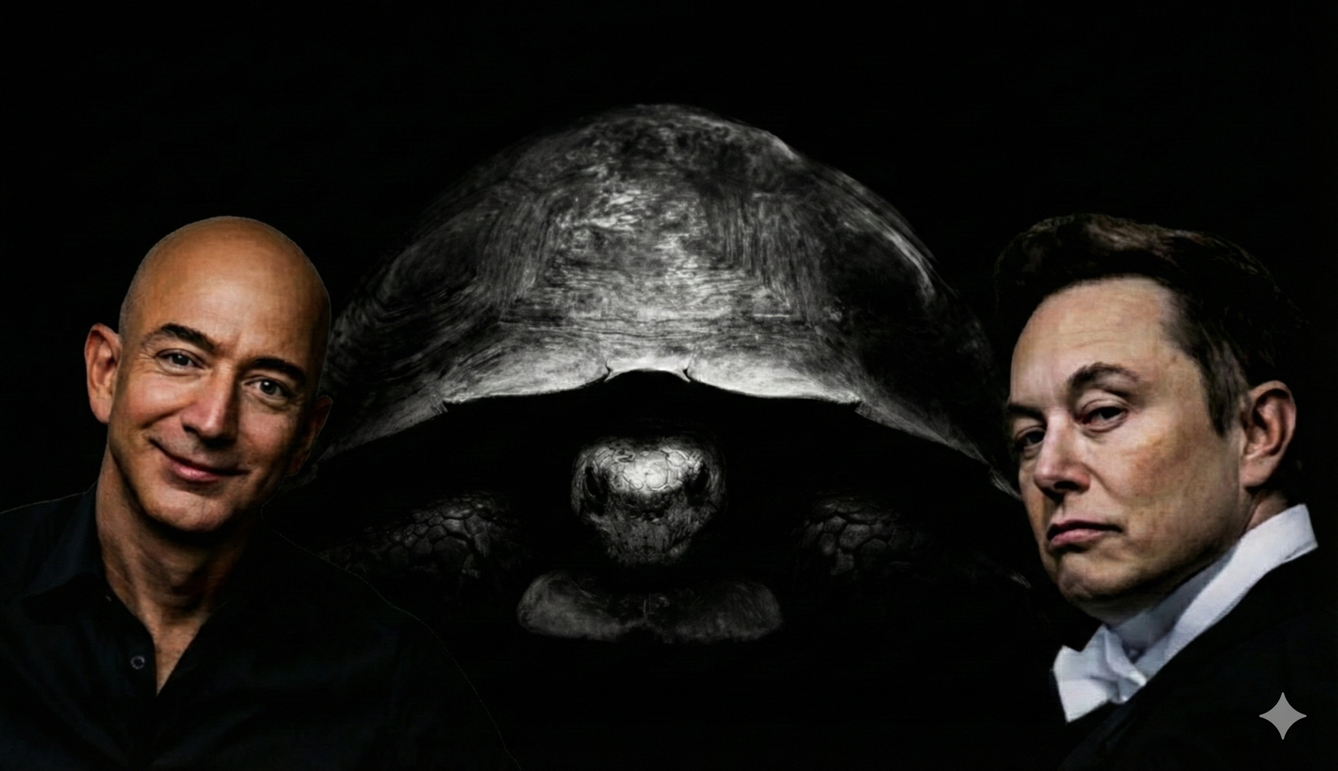 前几天,一向低调的杰夫·贝佐斯在埃隆·马斯克的地盘上发了一张黑白照片:一只乌龟正从阴影中探出头。这张没配任何文字的图,在航天圈里炸开了锅。(之前写过:网页链接)
