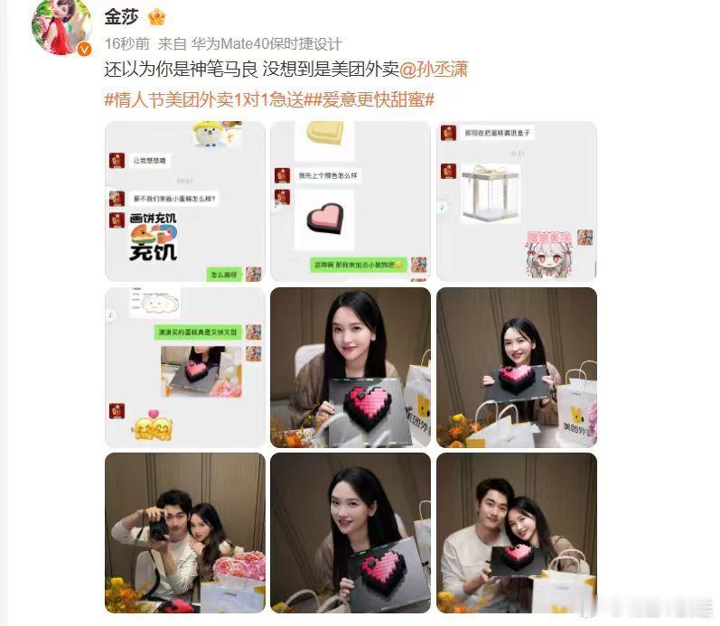 情人节金莎想要金莎得到 谁懂啊!情人节被金莎孙丞潇的浪漫戳中了~金莎想吃蛋糕,孙丞潇不敷衍不怠慢,先陪她玩画电子蛋糕的小游戏,等金莎画完,立刻悄悄安排一对一急送,兑现她的小愿望,从随口一提到位居可得,这才是情人节该有的样子~