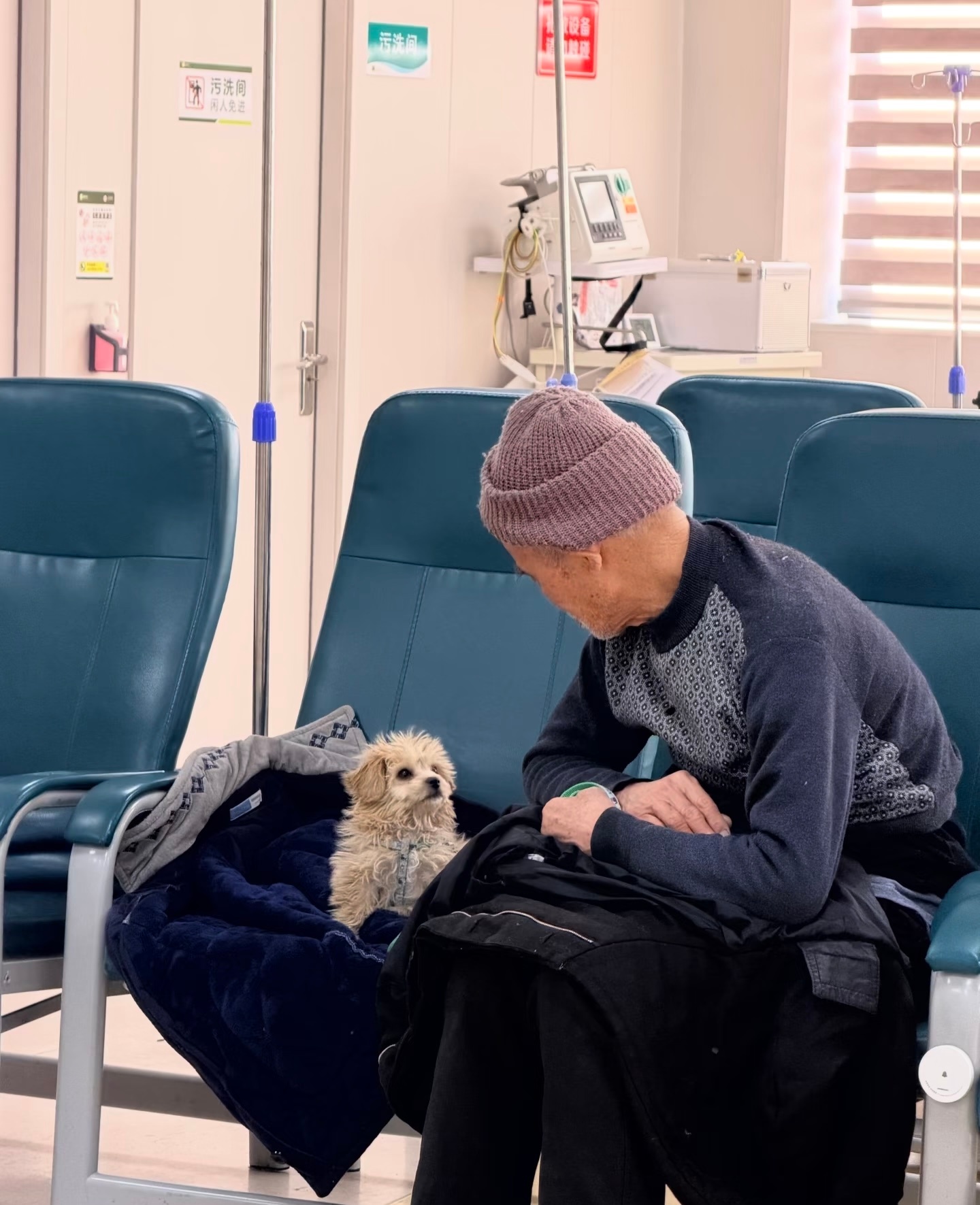爷爷和他的小狗,虽然爷爷是来打狂犬疫苗的