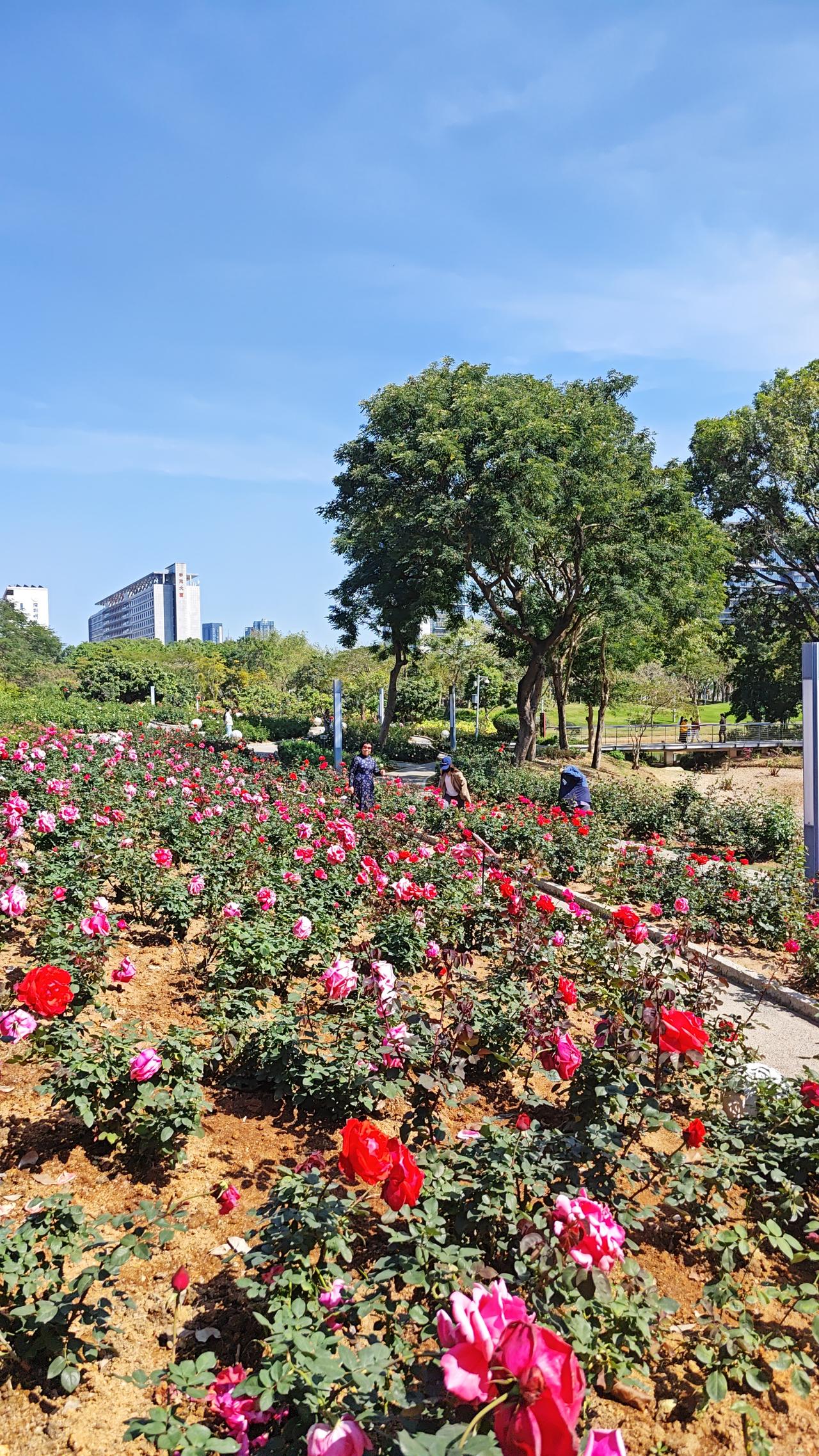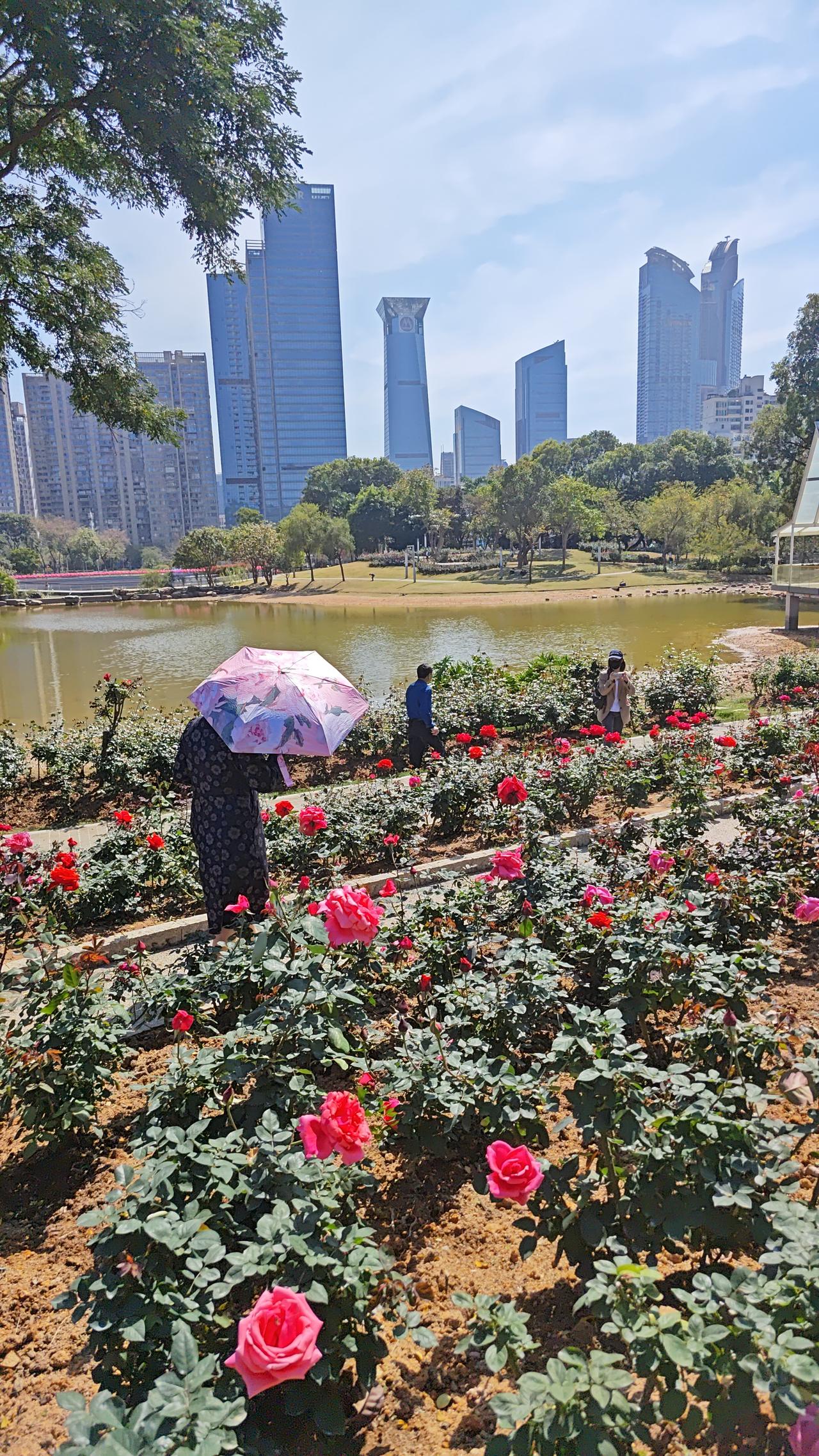 今天深圳究竟有多热?跟夏天真的没有区别。东北大叔今天在深圳公园里面赏花,疾呼,快点走,我都快热的中暑了[捂脸]。我一看大叔,穿了一件夹克,穿了一件长T恤,还穿了一件保暖内衣,这是对深圳的冬天没有任何的了解啊。今天深圳天气预报的天气是18到27摄氏度,但室外的温度绝对超过30摄氏度,这就是妥妥的夏天了。穿三层衣服到深圳旅游,真的会中暑的哟。不过今天天气很不错,蓝天白云,阳光灿烂,正是欣赏深圳风景的好时候。