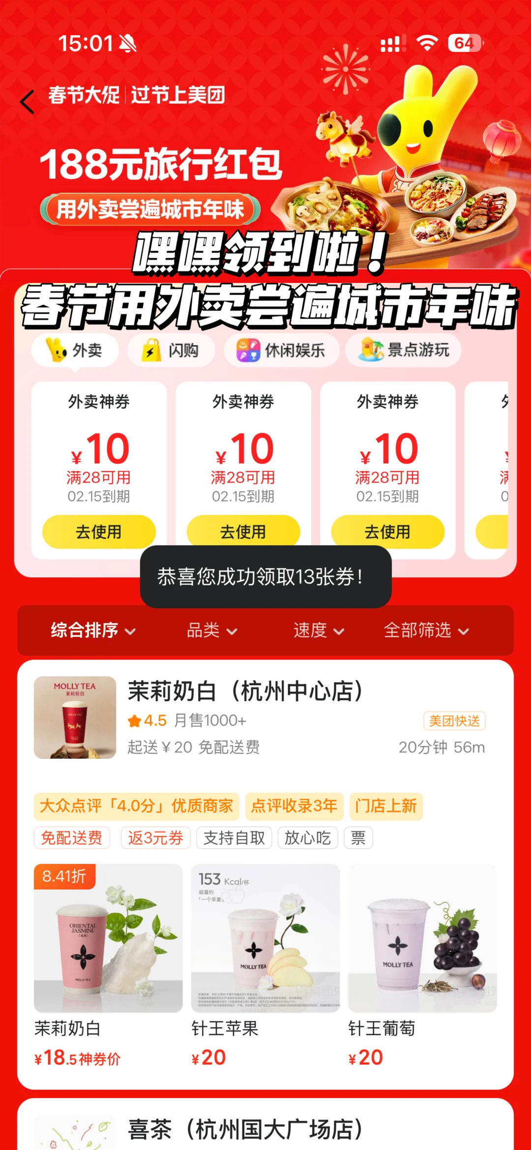 但是记住千万别原价点啊家人们!评论区有福利快冲🧧新年一起用外卖尝遍城市年味~