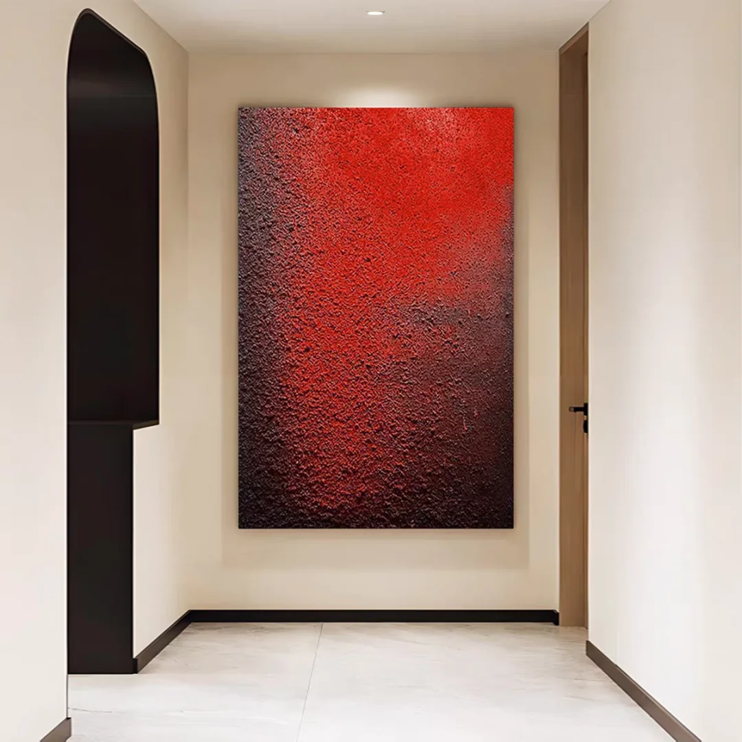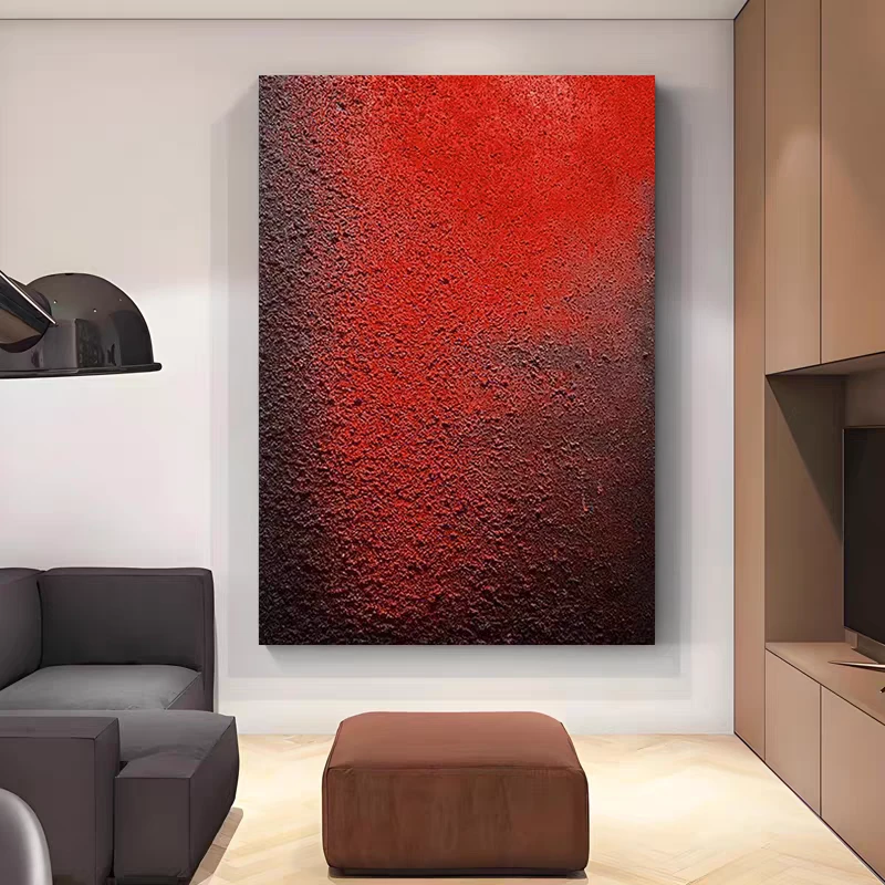 👉 姐妹们!挖到宝了😭!这幅红色抽象画真的美到失语!原本光秃秃的大白墙🚪,挂上瞬间有了艺术展那味儿~远看是渐变的酒红🌺,近看全是立体肌理感,手摸上去凹凸不平的质感绝了!
