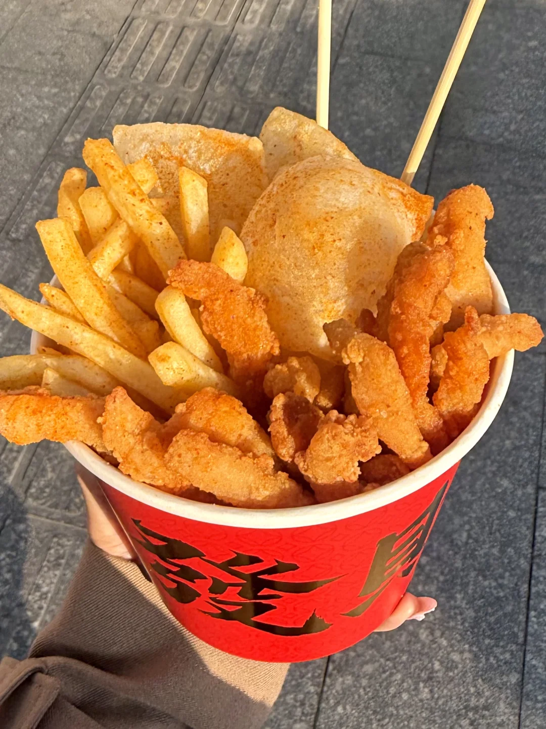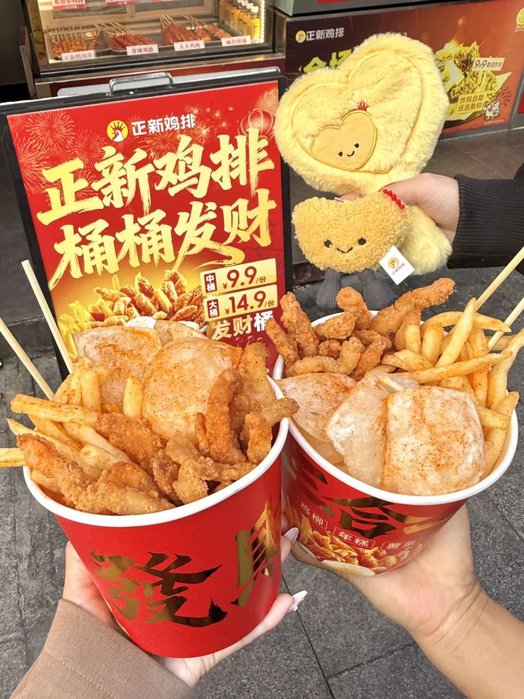 是谁还没吃过正新鸡排发财桶的!! 路过直接被香到走不动路🤤🤤 鸡柳+年糕+薯条三合一!拿到手超大一份才14.9r🥹沉甸甸的!hinnn适合和朋友出门的时候分享 强推咸甜+微辣!!好吃到舍不得放过每个指头……趁热吃酥酥脆脆的! 吃口鸡柳和年糕,新的一年“吉禄年高,步步高升”!再吃一口中薯,这不是就是新年有“薯不完的金条”简直完美!!!过年拍照还贼出片,怪有年味儿的✌️