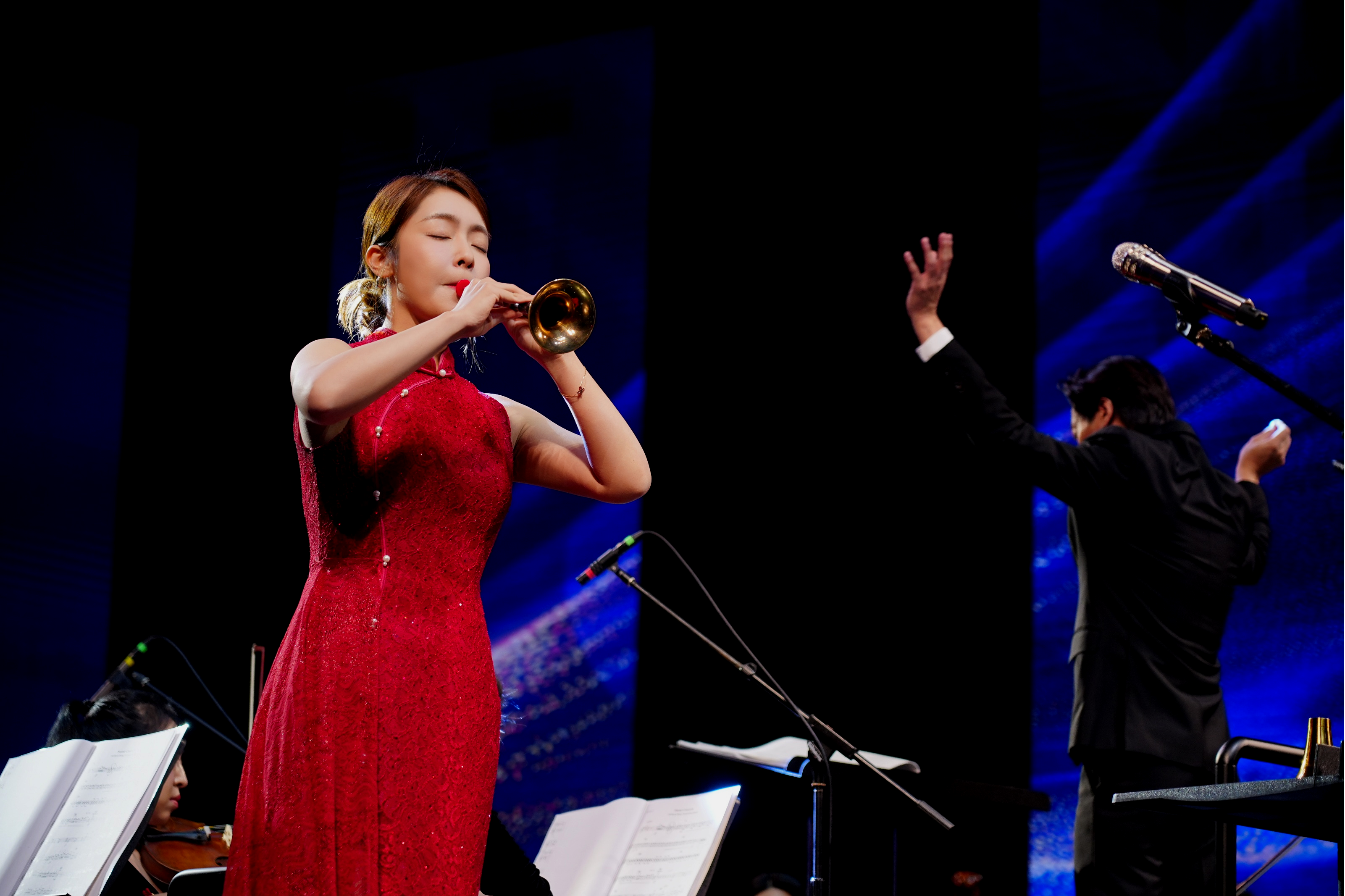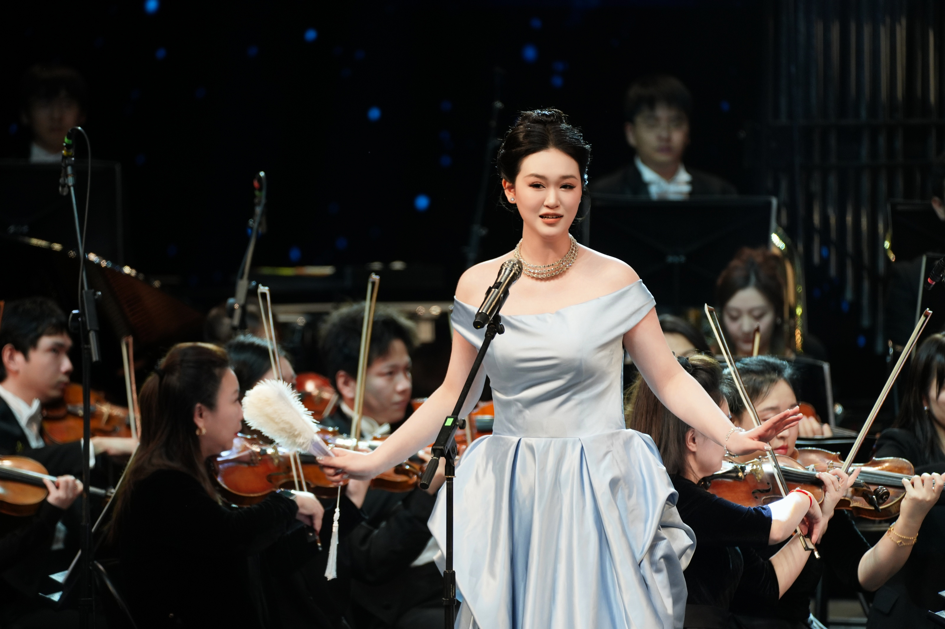 唢呐艺术家刘雯雯倾情演绎的《百鸟朝凤》,清脆悠扬的唢呐声仿佛将观众带入生机盎然的自然世界。《波斯进行曲》则以明快昂扬的旋律与节奏,带来别具风情的异域音画。女高音歌唱家席燕娟独唱的《茉莉花》,将这首经典民歌进行了现代而典雅的全新诠释,婉转悠扬的歌声令人陶醉。