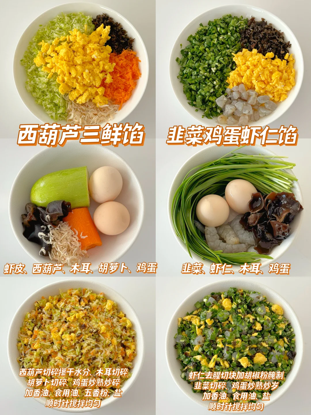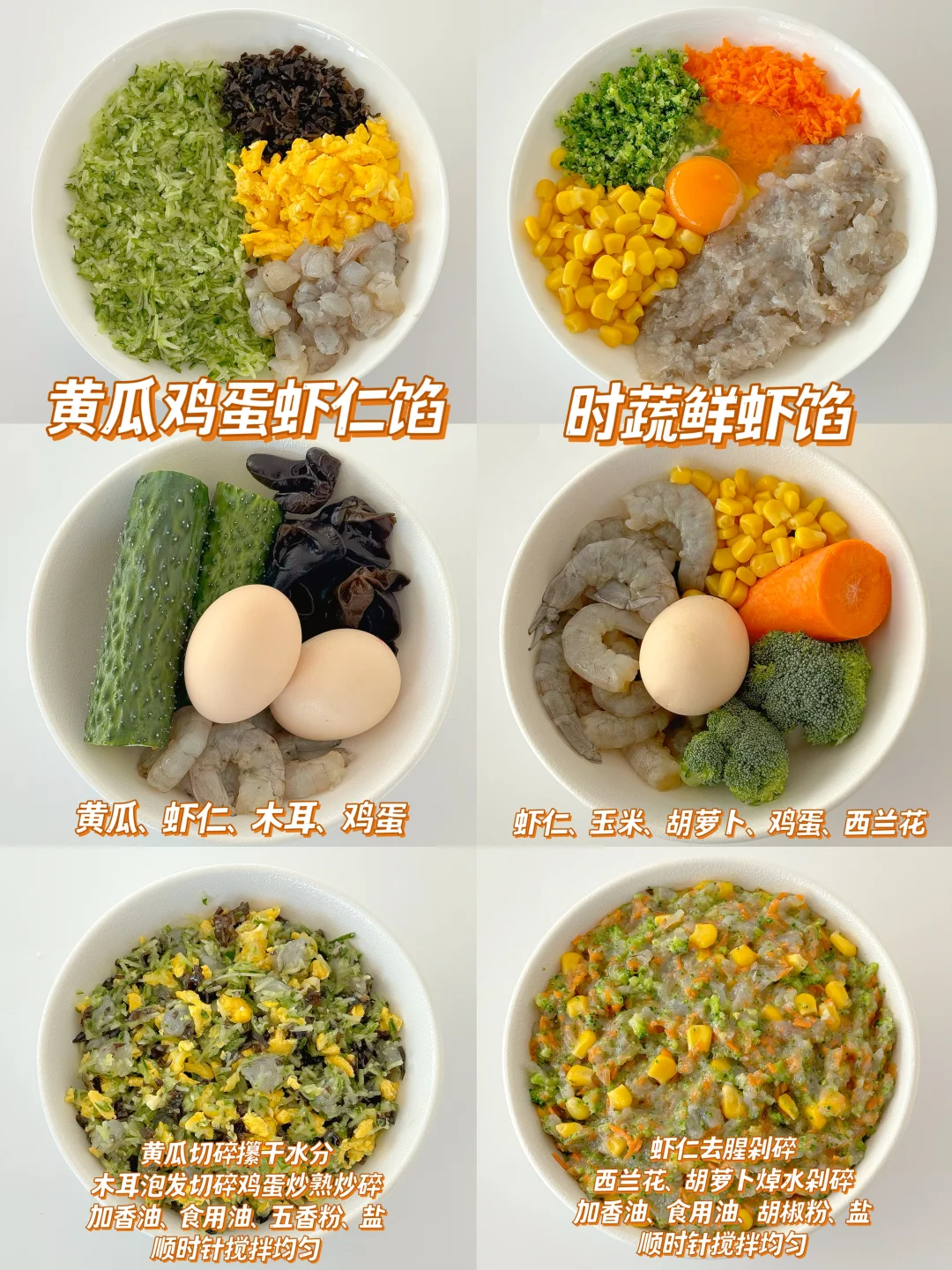 🌈新年的脚步越来越近了,年夜饭怎么能少的了饺子呢?饺子好吃,关键是馅,好吃又简单的饺子馅来了,赶紧码住,过年包饺子再也不用发愁了,整理了12款经常吃的饺子馅的做法,有荤有素,嫩而不柴,真的每一款都超级好吃哦,平时用来包馄饨、包子、馅饼、锅贴也很不错的,保证全家人都会爱上哦~ - ✅时蔬鲜虾馅 ✅韭菜鸡蛋虾仁馅 ✅西葫芦三鲜馅 ✅香菇玉米鸡肉馅 ✅芹菜猪肉馅 ✅白菜猪肉馅 ✅洋葱牛肉馅 ✅什锦猪肉馅 ✅莲藕猪肉大葱馅 ✅芸豆猪肉馅 ✅西兰花牛肉馅 ✅黄瓜鸡蛋虾仁馅 ❤️详细做法可以参考图片