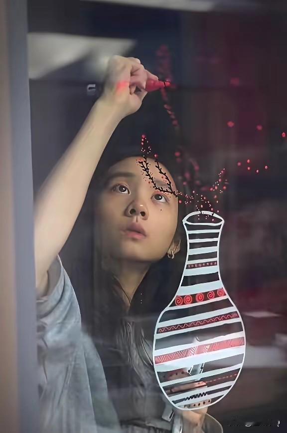 黄多多也太有才了!黄磊的女儿黄多多回来过年,自己动手画窗花,镜头下的她长发披肩