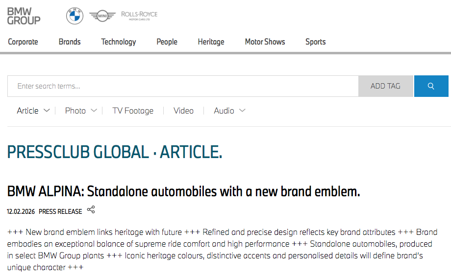 继1月2日,宝马中国宣布,BMWALPINA将作为宝马集团旗下专属独立品牌全新登场之后,2月12日,宝马集团正式发布BMWALPINA全新品牌徽章标识。