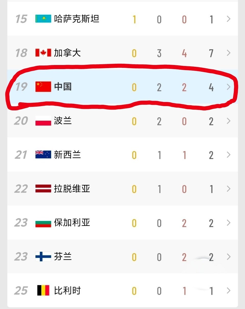 2026米兰冬奥会奖牌榜中国队2️⃣银2️⃣铜暂时排名19恭喜巴西获冬奥首金排名