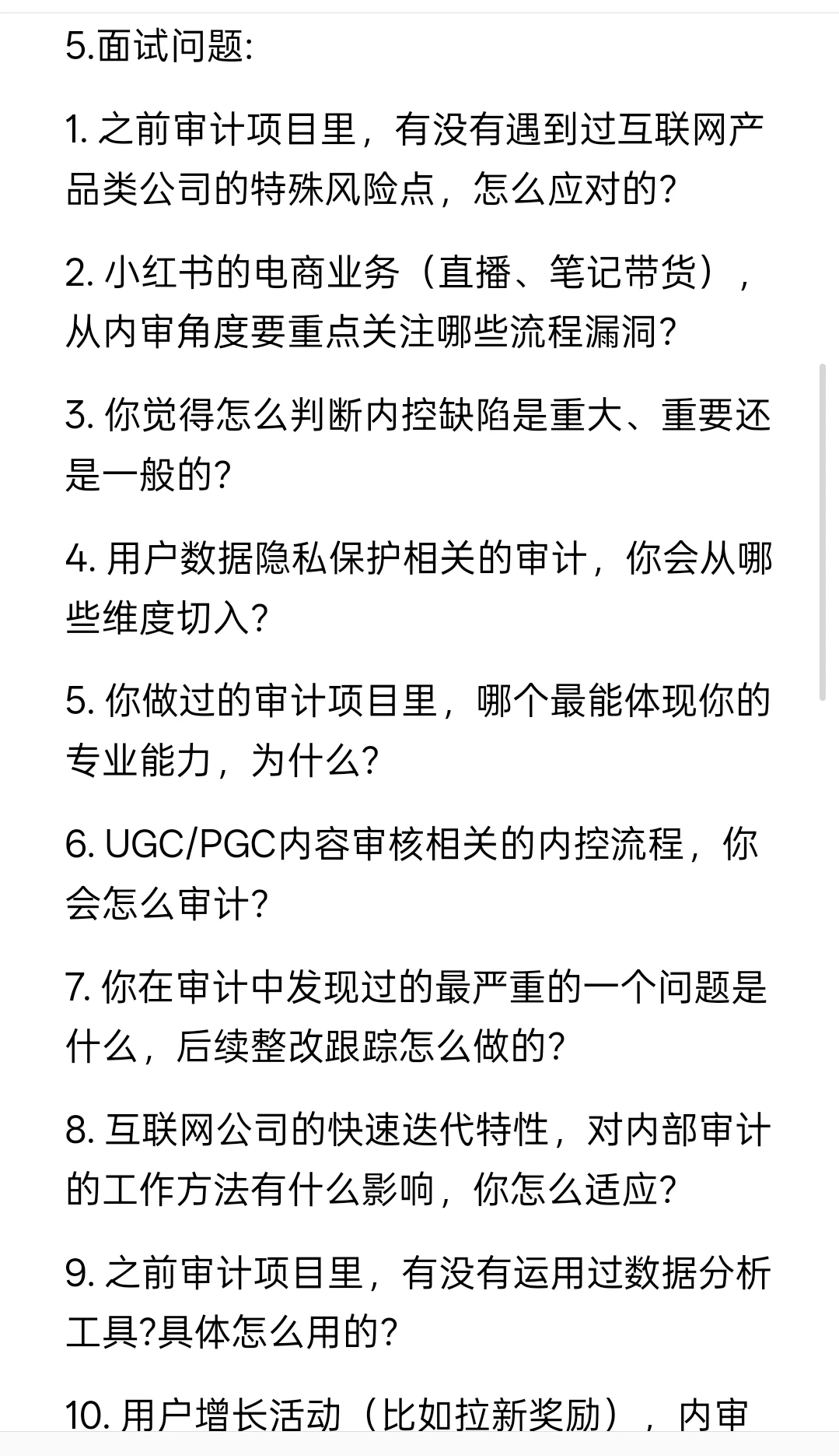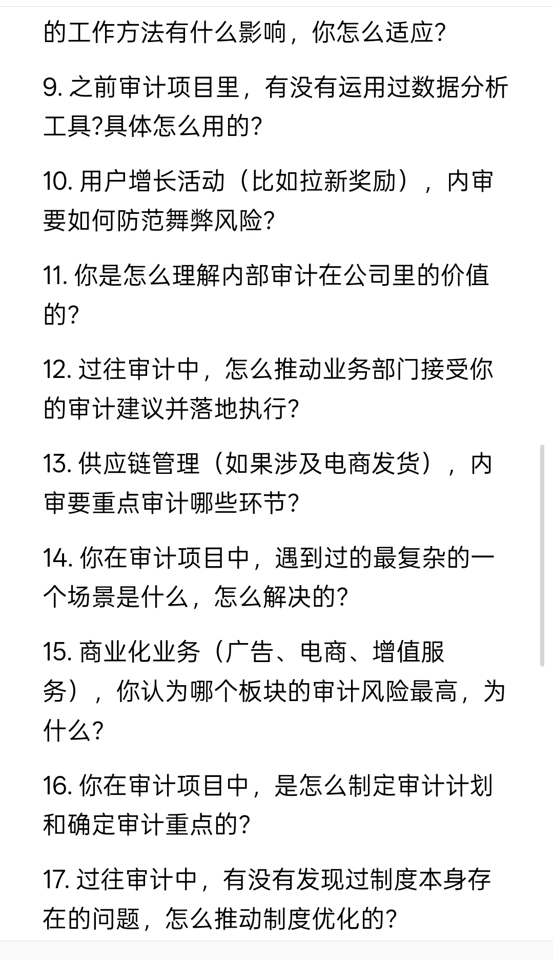 8. 互联网公司的快速迭代特性,对内部审计的工作方法有什么影响,你怎么适应?