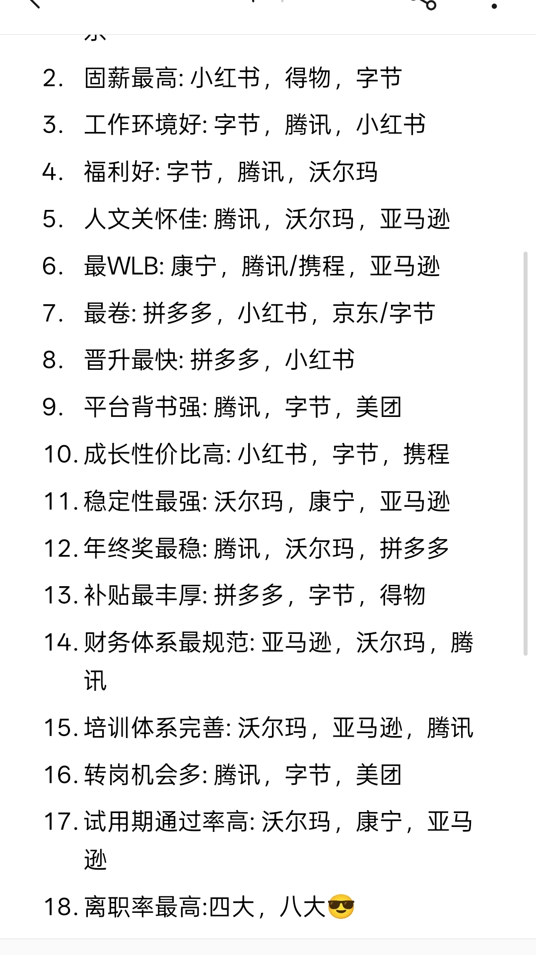 12. 年终奖最稳: 腾讯,沃尔玛,拼多多