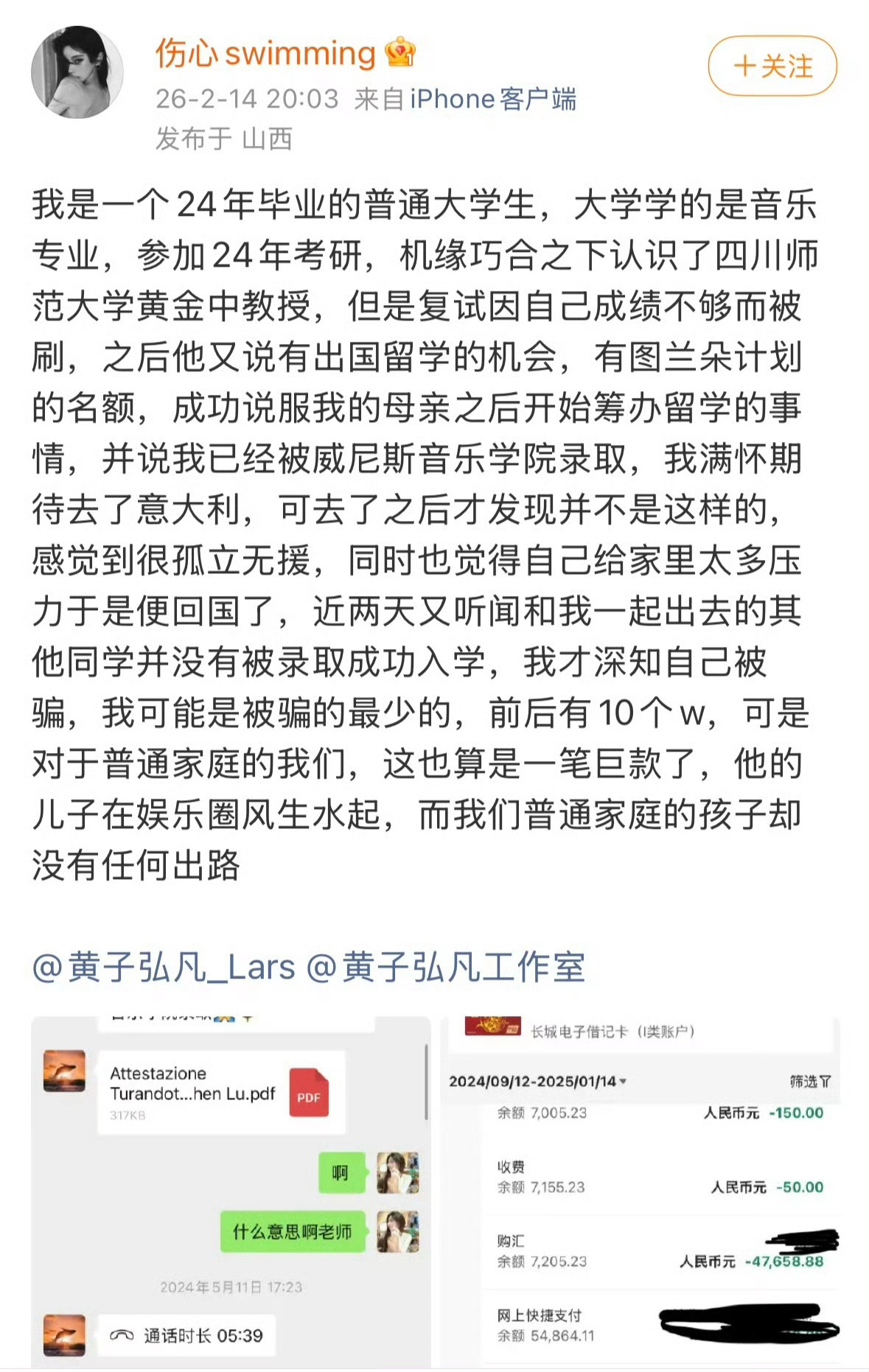 黄子弘凡爸爸是国家一级演员本来就不是真的,几张聊天记录能代表什么?大过年的衣服我