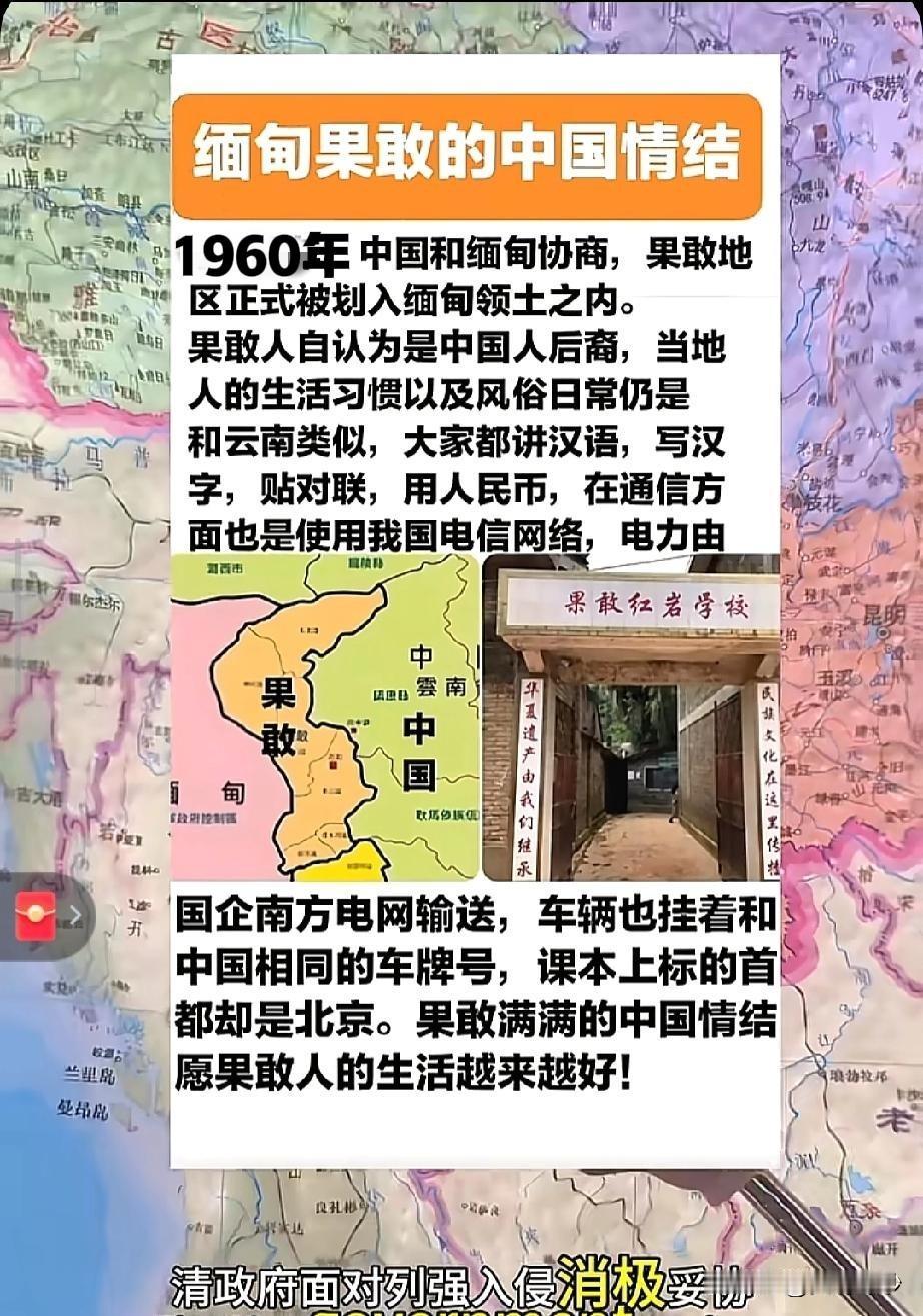 缅北果敢地区盼望“纳土归华”,不知何日愿望成真。 当地规划升级公路、扩建机场,希望融入中缅经济走廊,成为连接中国与东南亚的贸易中转站。 文化与民生方面,彭德仁推动全面恢复汉语教育,以语言为纽带深化与中国的文化联结。而早在汶川地震时,果敢民众就倾尽全力捐款110万元,这份同胞情谊令人动容。如今双方民间文艺互访、边境物资流通频繁,让这份跨越国界的联系愈发紧密。 2026年2月,某特区2025年度工作总结暨表彰大会隆重召开。会上,彭德仁主席作总结讲话,强调要坚定不移推进“政治建军、依法治军”目标,勉励全体官兵和公职人员不忘初心、自强不息。 他深情指出,这片土地有着与祖国深厚的历史渊源,曾经先辈们一直怀揣着回归祖国的殷切希望,要将其建设成“缅北的高原明珠”。同时,他严肃告诫各级干部,要坚决远离毒品和电信诈骗,全面发展合法经济。 附果敢历史归属: 1894年:中英《续议滇缅界务商务条款》,明确果敢属中国。 1897年:英国强迫清廷签订《中英续议缅甸条约附款》把果敢割让给英属缅甸。 1960年:中缅正式划界,从法律上确认果敢属缅甸。 缅北地区