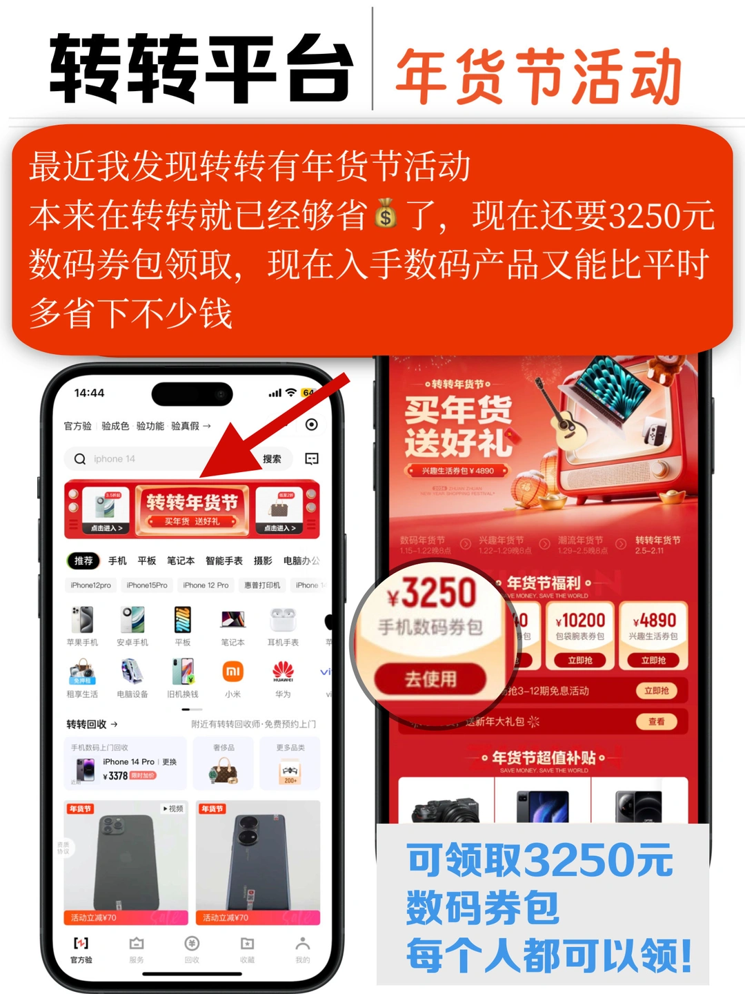 ④最近转转还有年货节活动,进入APP就能看见,每个人都能领到3250元数码补贴,又能省下不少钱