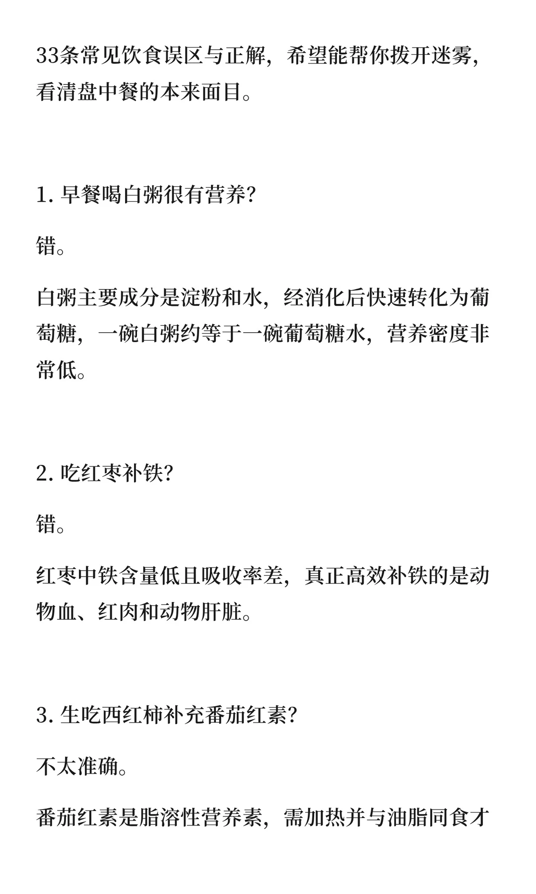 关于饮食营养的33个真相