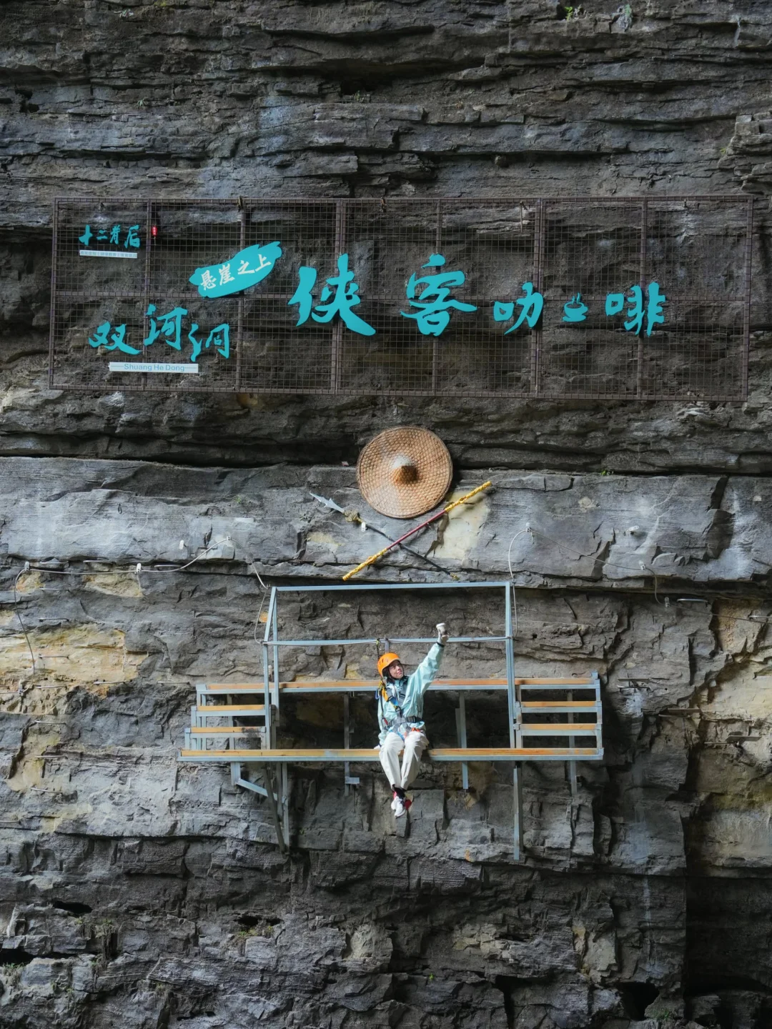 悬崖咖啡建议大家一定要体验,真正的飞檐走壁,脚下就是深渊,整个过程让人胆战心惊,但走完后真的很有成就感。在悬崖咖啡还有马年限定「马屁」装置,不得不说,景区太会玩了。