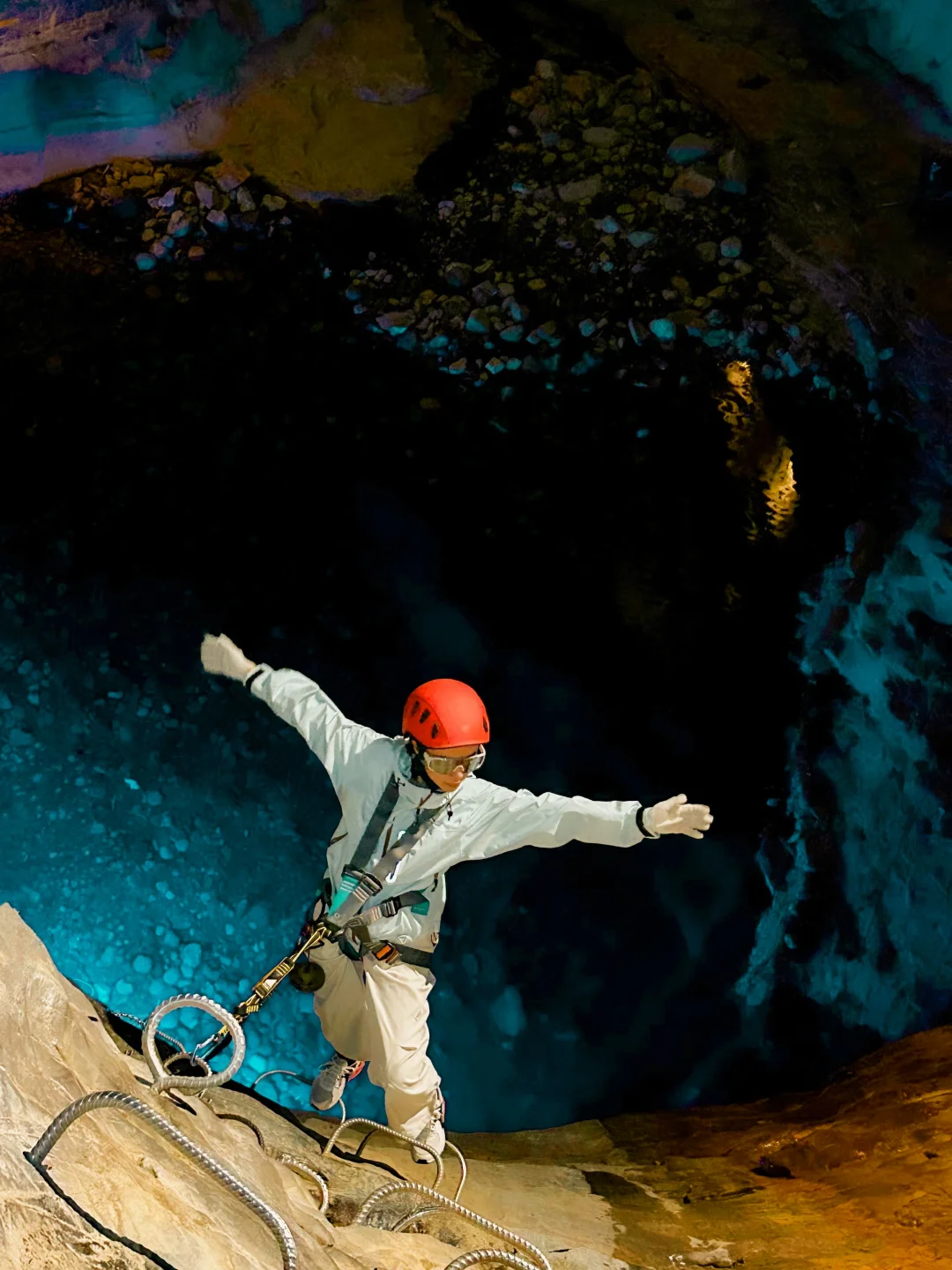 整个行程➕拍照大概2小时,从崖壁上攀岩向上越过地下河谷,还另外体验了绳降,感觉非常棒!。