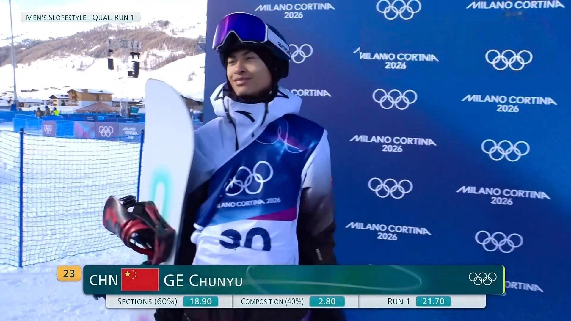 单板滑雪男子坡障技巧预赛葛春宇第一跳分数继续加油全民聊冬奥