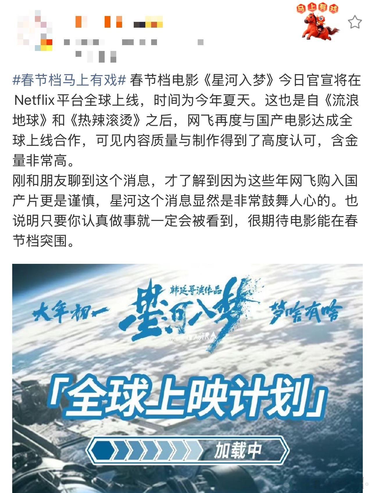 海外流媒买断星河入梦的含金量 这个星河入梦狠狠期待了,网飞今年直接提前买断全球流媒体版权,上映前购入的含金量🈶