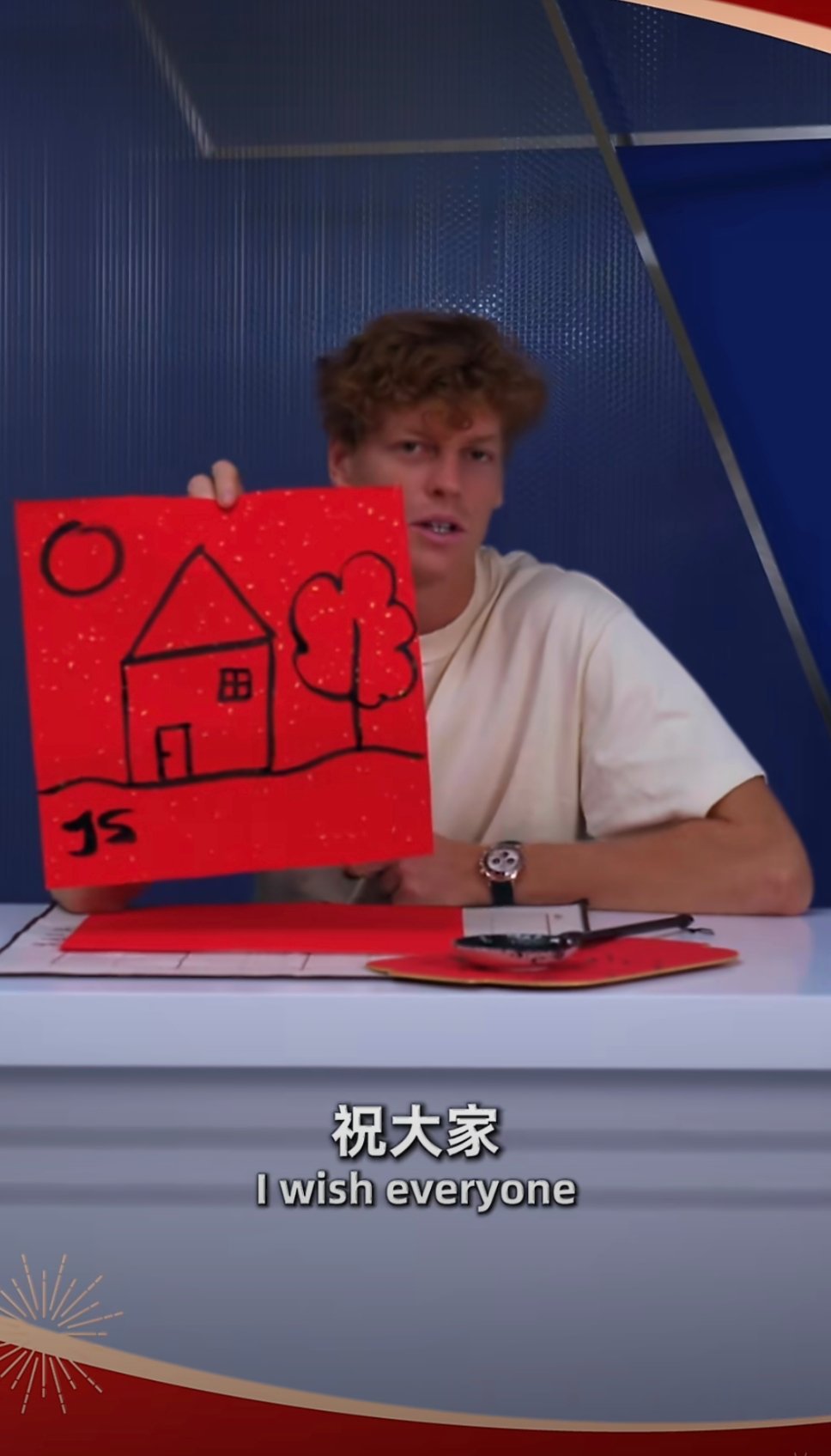 中网球星年画大赏辛纳画的房子,有点像小朋友画画的风格期待辛纳的赛场体育大拜年20