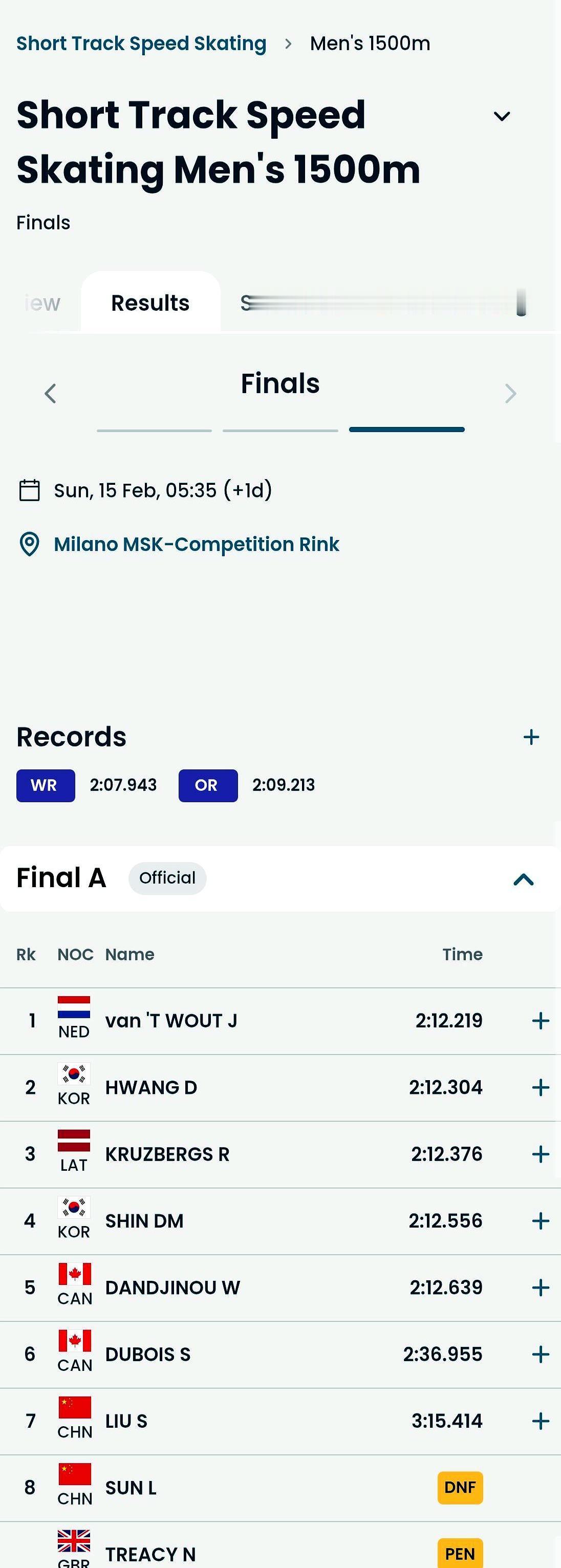 凌晨四点,三个赛场,中国冰雪健儿尝尽冰火两重天。 短道速滑男子1500米决赛