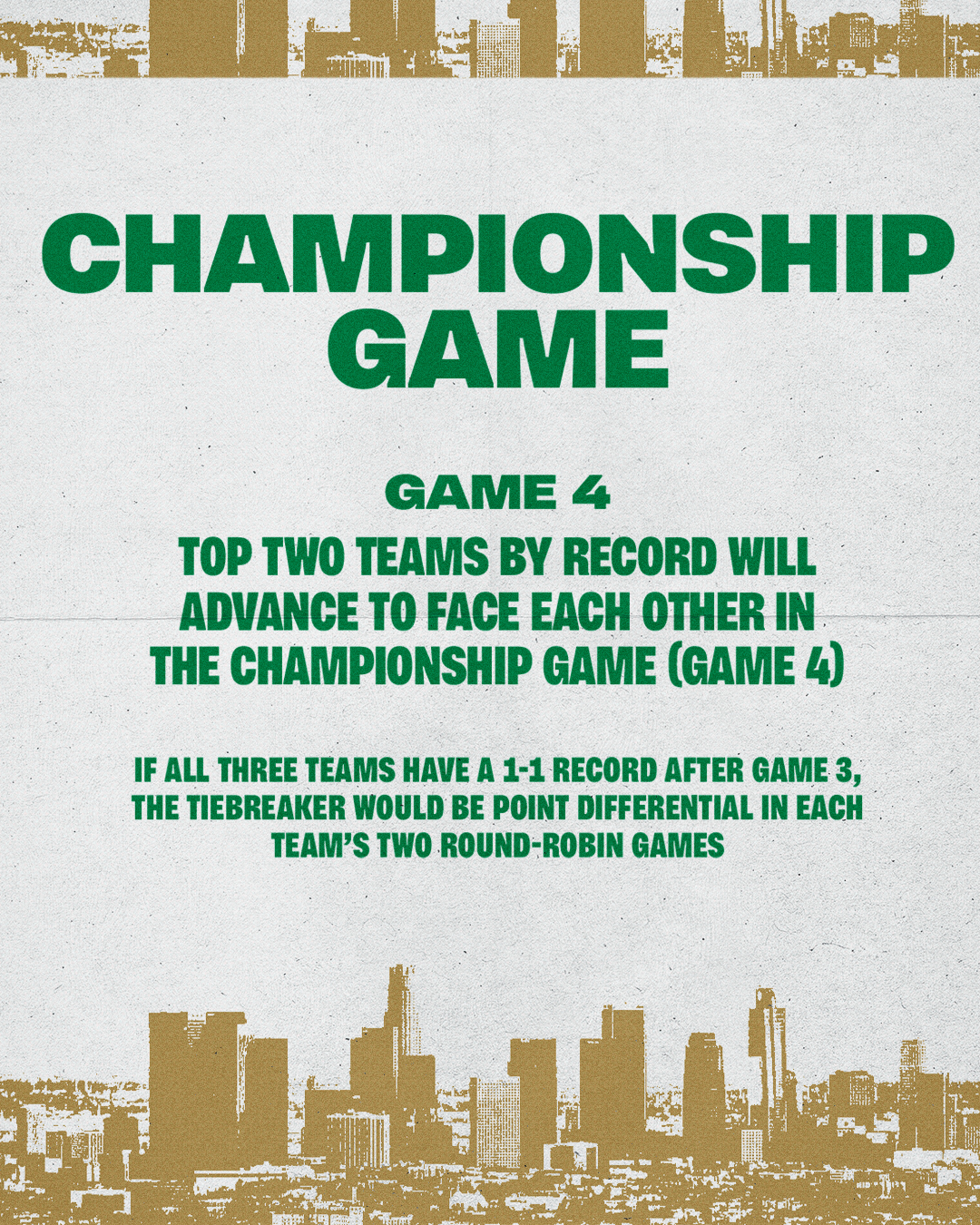 第4场(冠军赛)战绩排名前两名的球队将晋级,在冠军赛(第4场)中对阵。