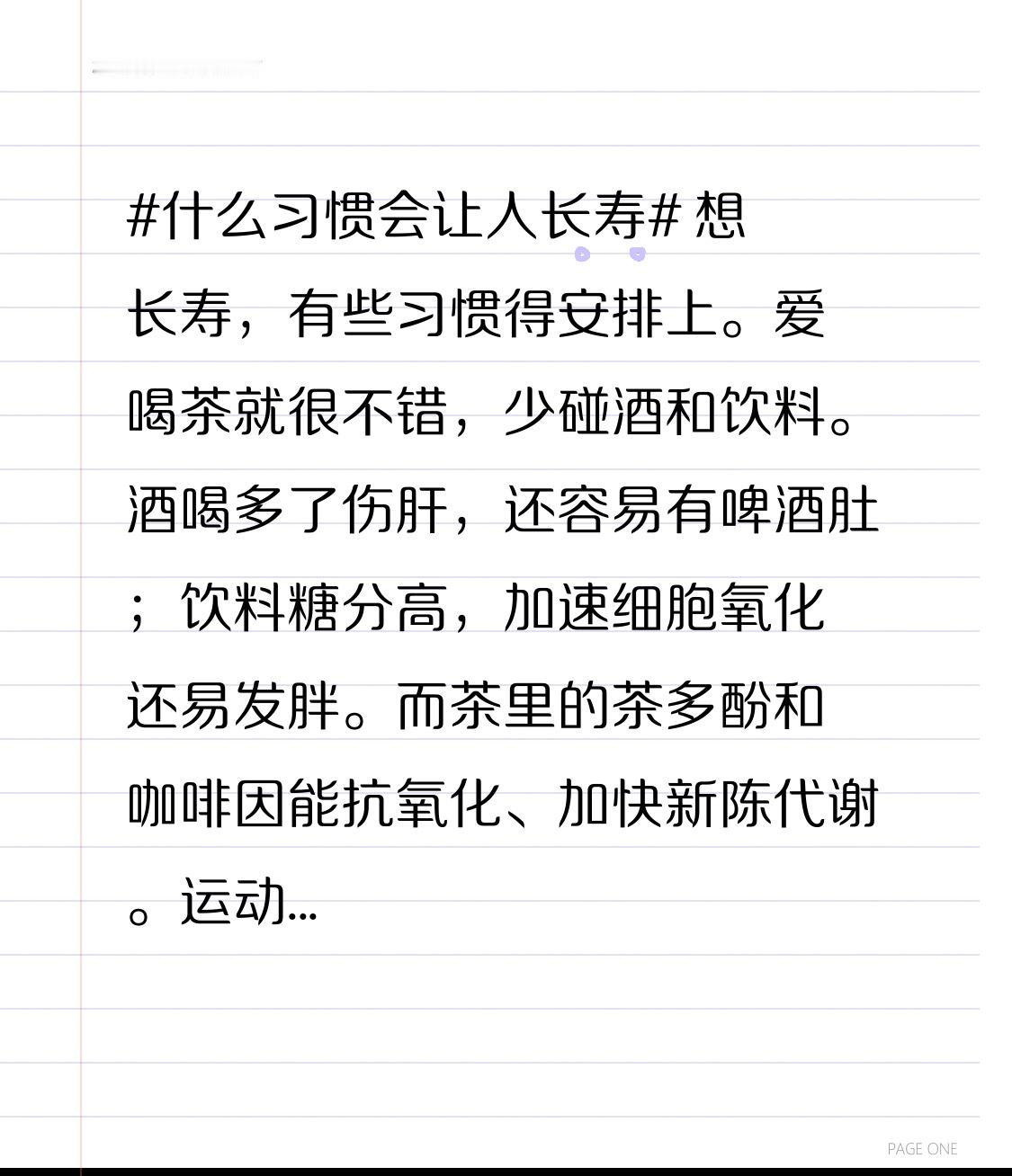 想长寿,有些习惯得安排上。爱喝茶就很不错,少碰酒和饮料。酒喝多了伤肝,还容易有啤酒肚;饮料糖分高,加速细胞氧化还易发胖。而茶里的茶多酚和咖啡因能抗氧化、加快新陈代谢。 运动也不能少,一周累计运动不少于150分钟,快走、广场舞都行。每天22分钟或者一周5次、每次半小时,长期坚持能控制体重、降低三高。 作息规律同样关键,每天睡够7小时。身体在睡眠中修复和调节代谢。此外,均衡饮食、社交活动、减压、不吸烟、适度饮酒等习惯,也都对长寿有帮助。