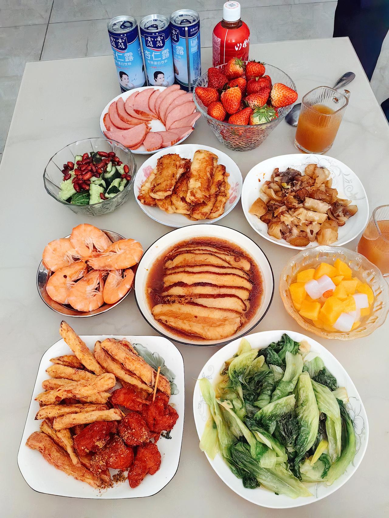 一家三口过年饭,十个盘。[憨笑] 按照唐山老家的习惯,中午吃菜和米饭,晚上吃饺