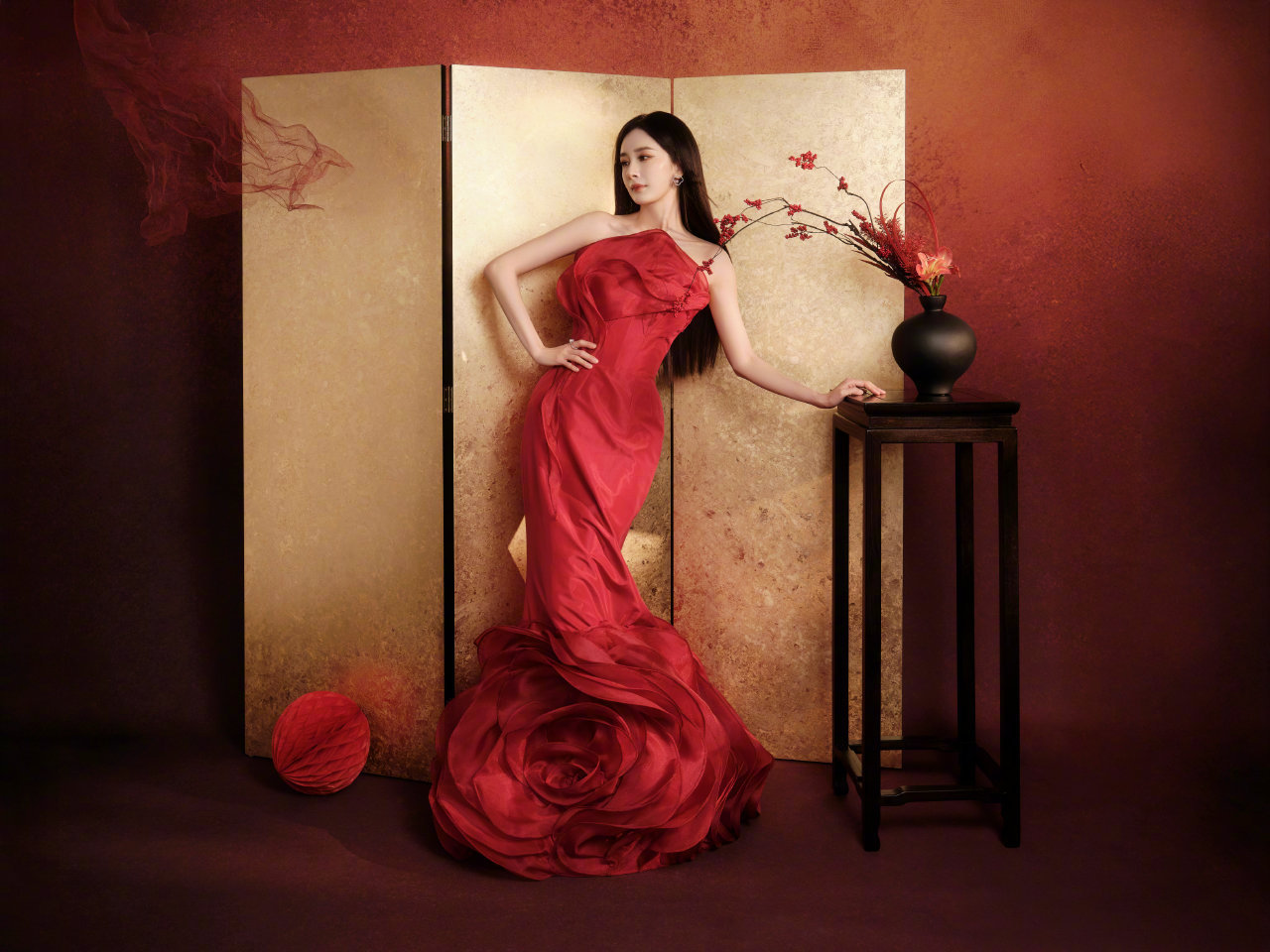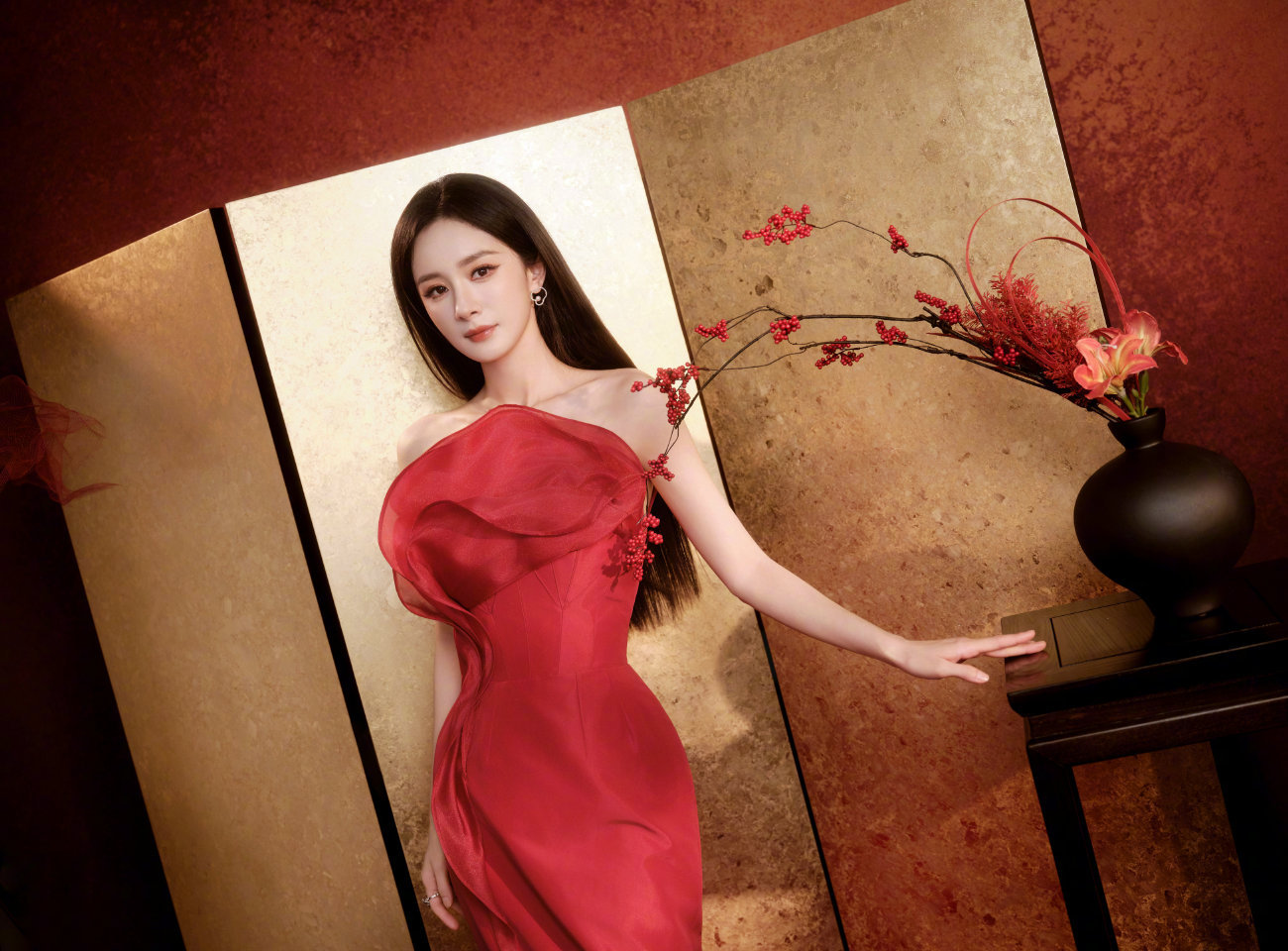 杨幂 马年新春贺岁图,身着MARK BUMGARNER 2025定制系列,佩戴TASAKI 珠宝出镜,红色花朵裙,明媚又自信!马年继续红红火火,把日子过出“花”来~ 🌺🏮🎋 杨幂贺岁图 新春茶话会