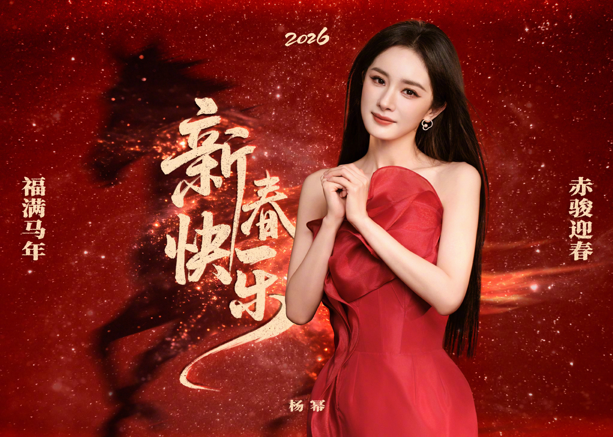 杨幂 马年新春贺岁图,身着MARK BUMGARNER 2025定制系列,佩戴T