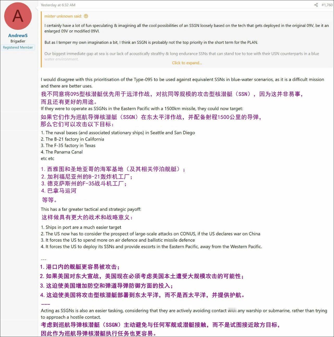 美国人对095核潜艇的看法:部署东太平洋,洛马的F35工厂在射程内