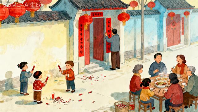说到春联,除夕贴春联是迎新的必备动作。春联千千万,最好的莫过于那副“天增岁月人增寿,春满乾坤福满门”,人间和天上,自然和人伦,写实和祝福,这么朴素而又深邃地组合在一起,已成经典,永不过时。