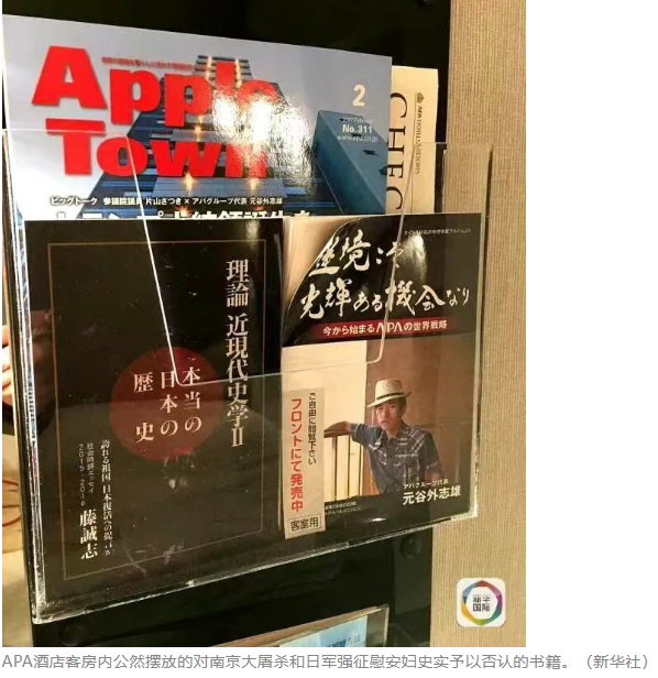 2017年1月,有多名中外游客发现,APA酒店客房内放置了多本元谷外志雄撰写的书籍,书中对南京大屠杀和日军强征慰安妇等史实予以否认。消息曝光后,元谷外志雄在APA集团官网和社交媒体平台连续发表声明,拒不撤下相关书籍,引发了中国等多国民众的强烈谴责。