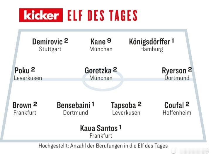 🚨哈利·凱恩和格列茨卡入選[踢球者]評出的本週德甲最佳陣容🔥🔥🔥🏴🇩🇪
