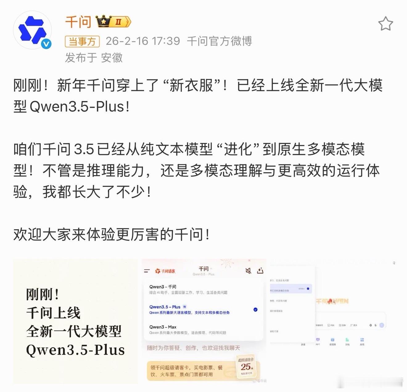 除夕夜开源 Qwen3.5,这种操作阿里是真的懂氛围感,陪全球开发者过年,还送一份压轴礼。新一代千问的混合注意力机制很吸引人,尤其是原生支持 VLM,意味着模型在图文理解上的能力直接打包好给你。开源阵容也不含糊,既有 2B 的密集模型满足轻量需求,也有 35B-A3B MoE 型号给你硬核算力体验,推理成本大幅下降,对中小团队来说是个实实在在的福音。更关键的是,代码已经提到 HuggingFace Transformers,春节一到,就能第一时间“撸”起来。阿里连续两年在除夕夜撒大招,这份坚持也让它在全球 AI 开源生态的地位更稳了。千问Qwen3.5大模型发布