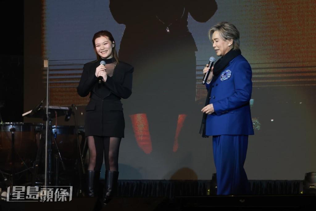 黄博、黄洛妍昨晚在湾仔伊馆为《贾思乐Happy Together Again 2026 in concert》演唱会演出,黄博指与贾思乐合唱,获对方给予很多信心,更给她贴士要谦虚和让不开心的事过去,在唱歌方面得到很多鼓励,大赞前辈唱歌有味道又有自信。