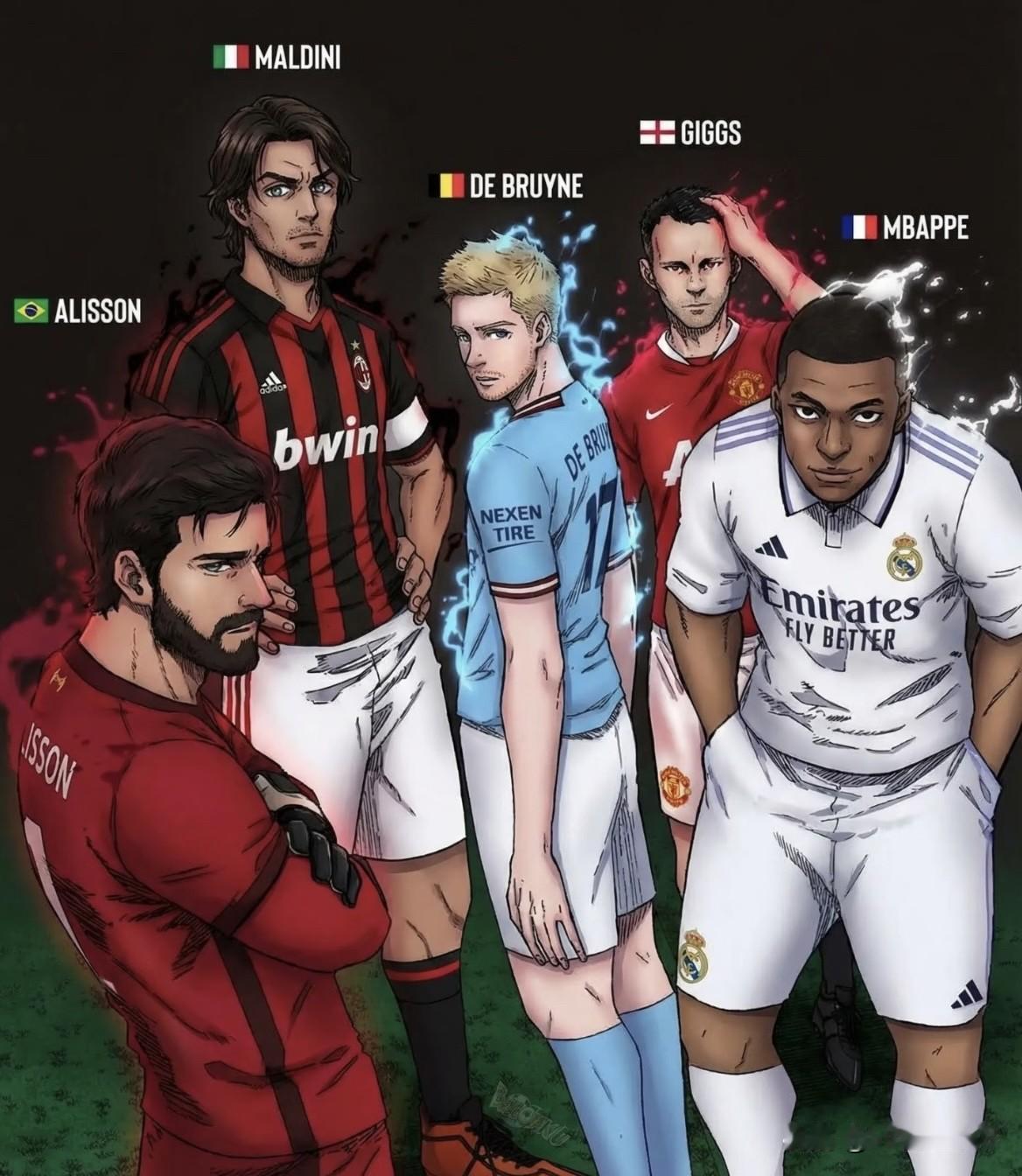 如果都在巅峰期,5人制足球哪个队会胜~ 图片源于@ball.otaku 布冯 诺伊尔 阿利松 C罗 德罗巴 姆巴佩 伊布 吉格斯 皮尔洛 马尔蒂尼 拉莫斯 特里 足球最佳5人组