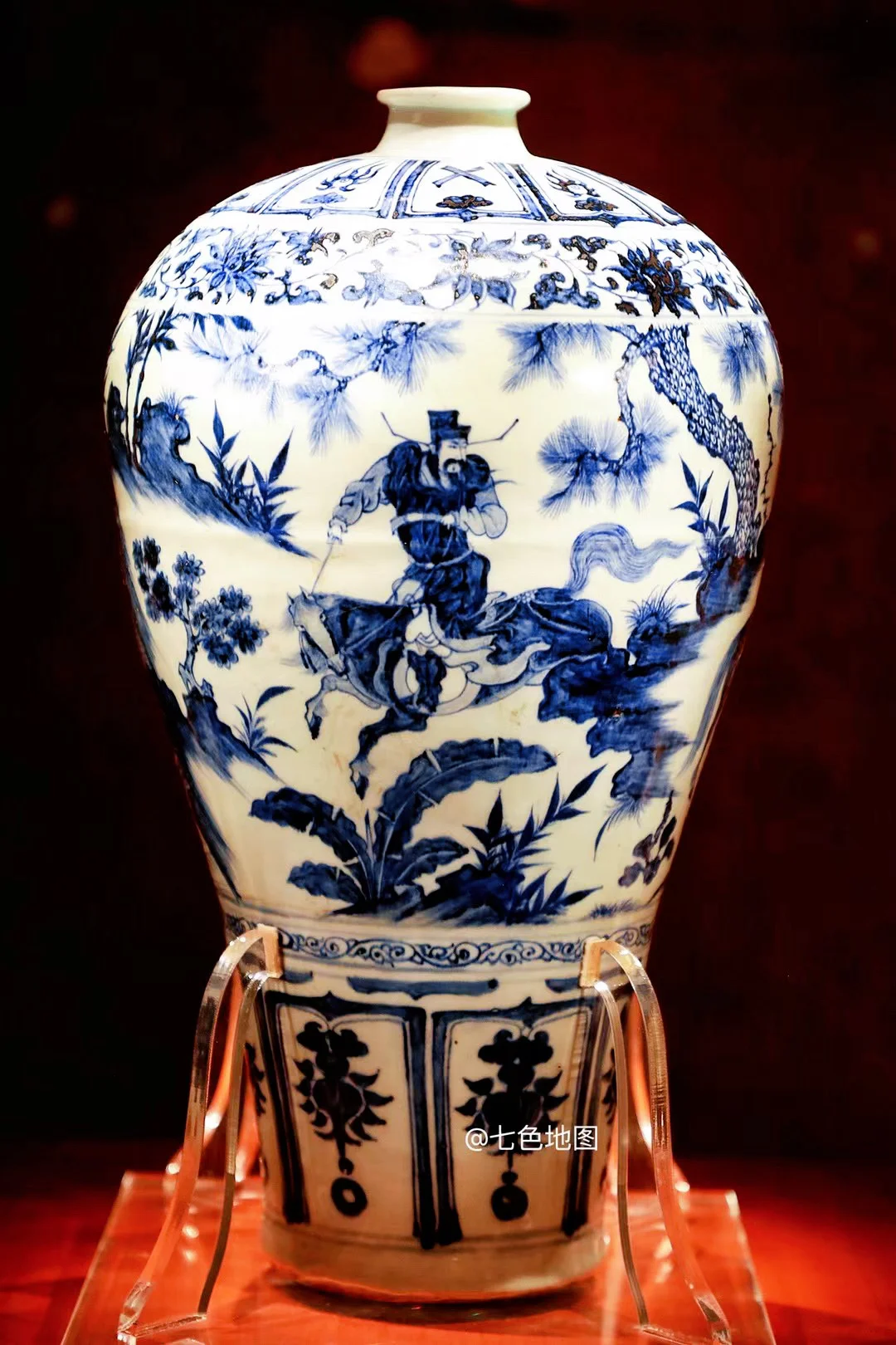现藏南京市博物馆,元代青花巅峰之作。瓶身主题画面以1匹急驰骏马为核心。