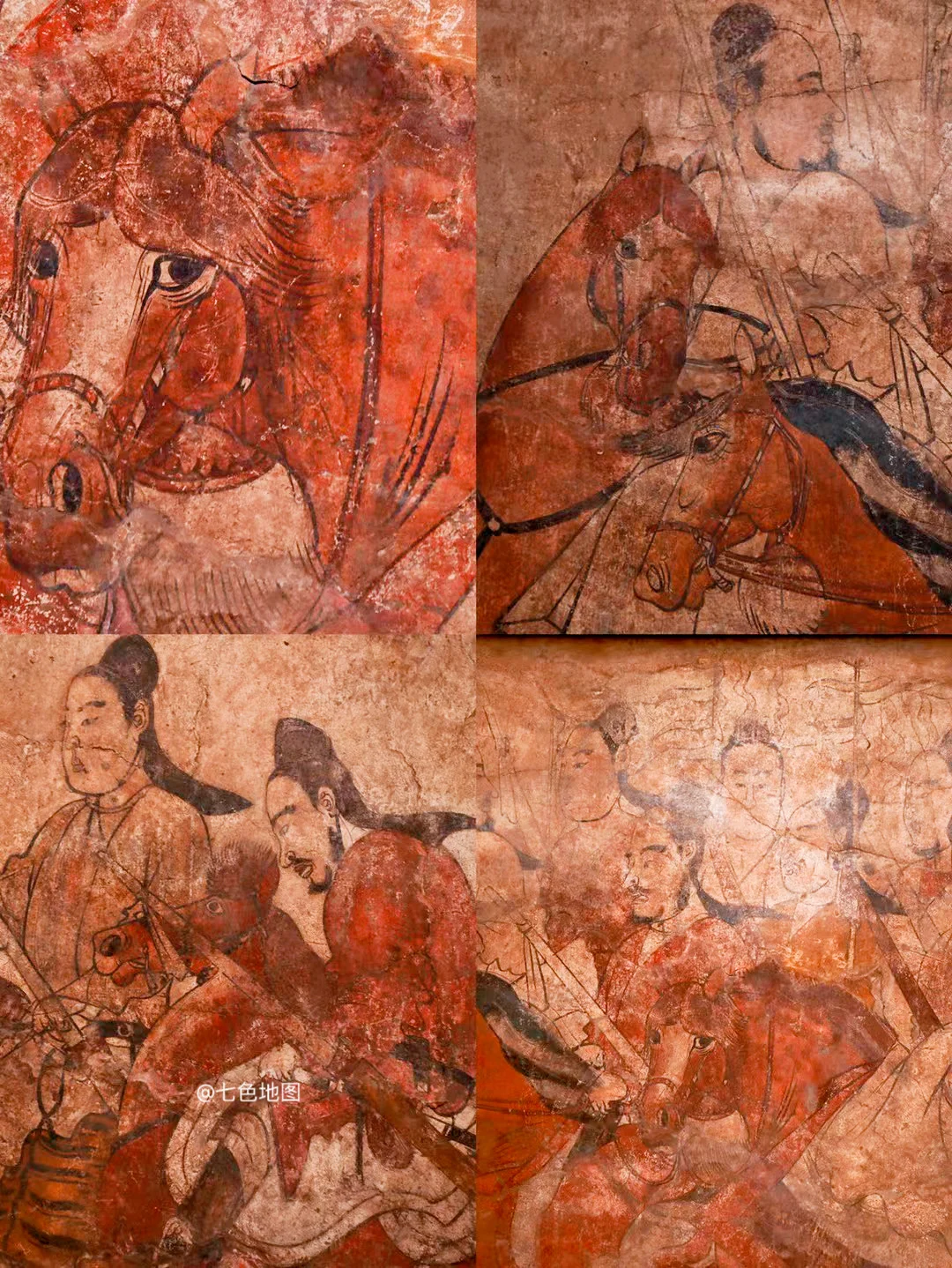 现藏山西博物院。北朝壁画代表作,长卷式展现贵族车马出行盛景,填补北朝绘画史空白。